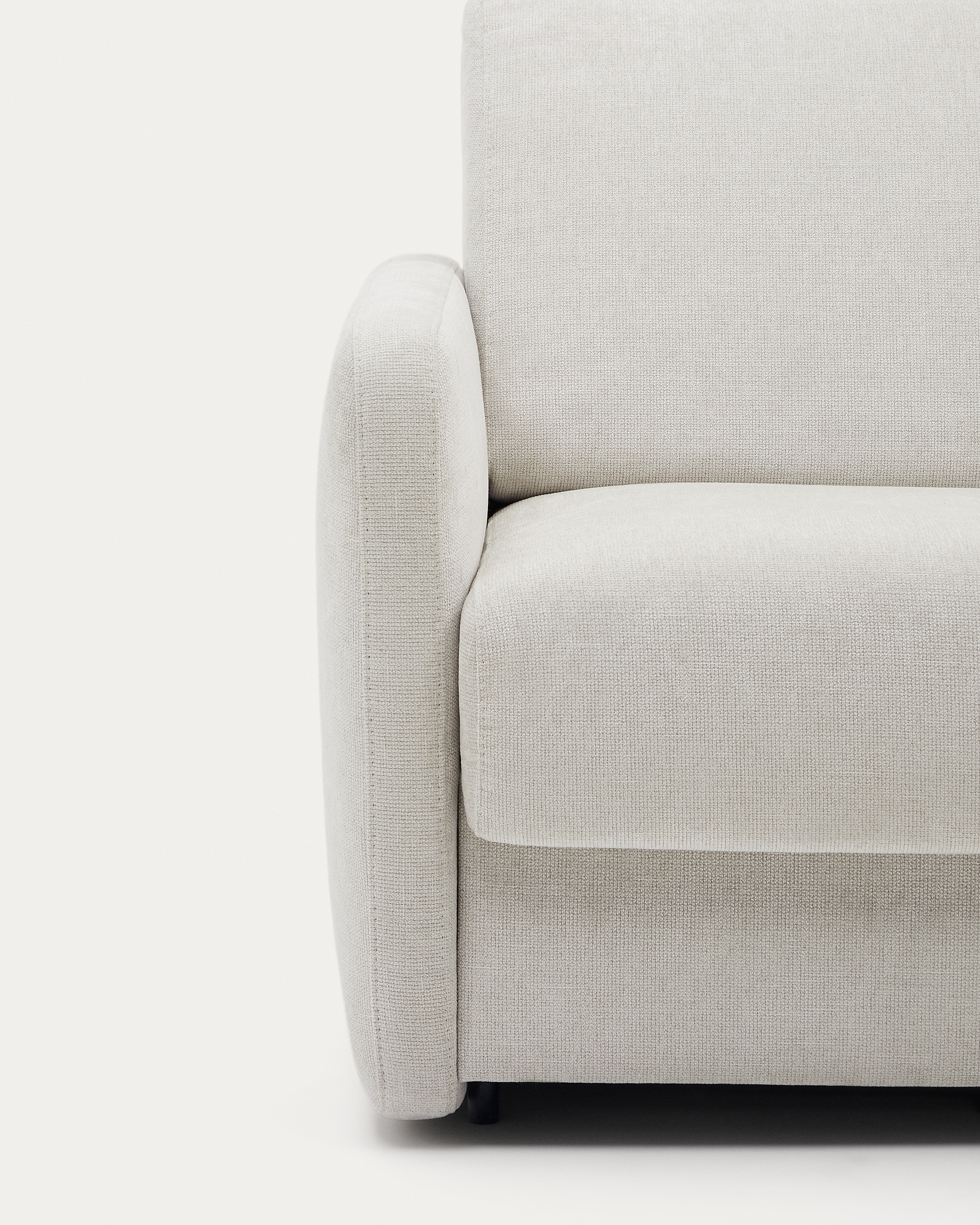 • Kis struktúrájú, gyöngyház színű chenille szövetbe bújtatott kanapéágy foltálló kezeléssel. Levehető ülő- és háttámlahuzatok.