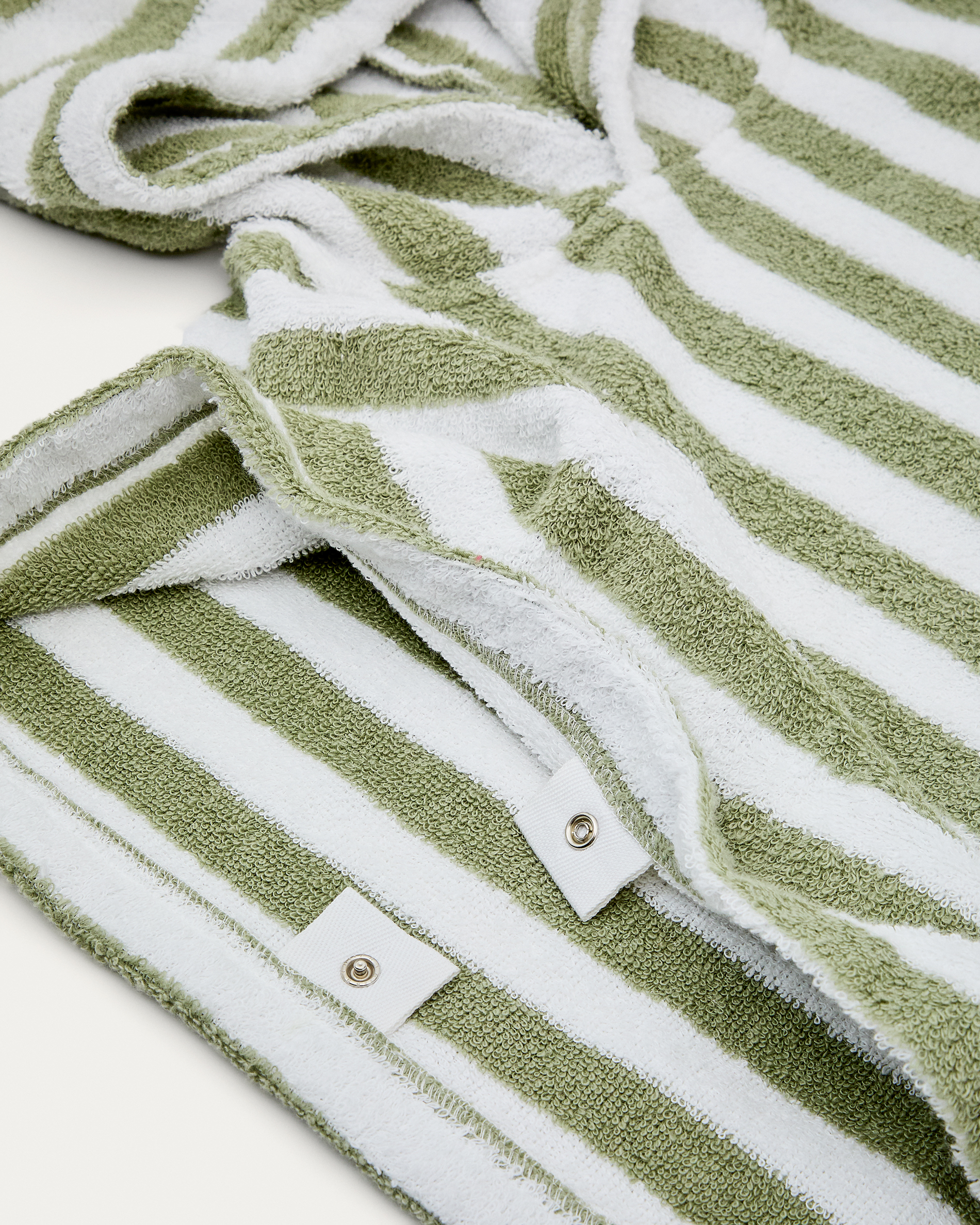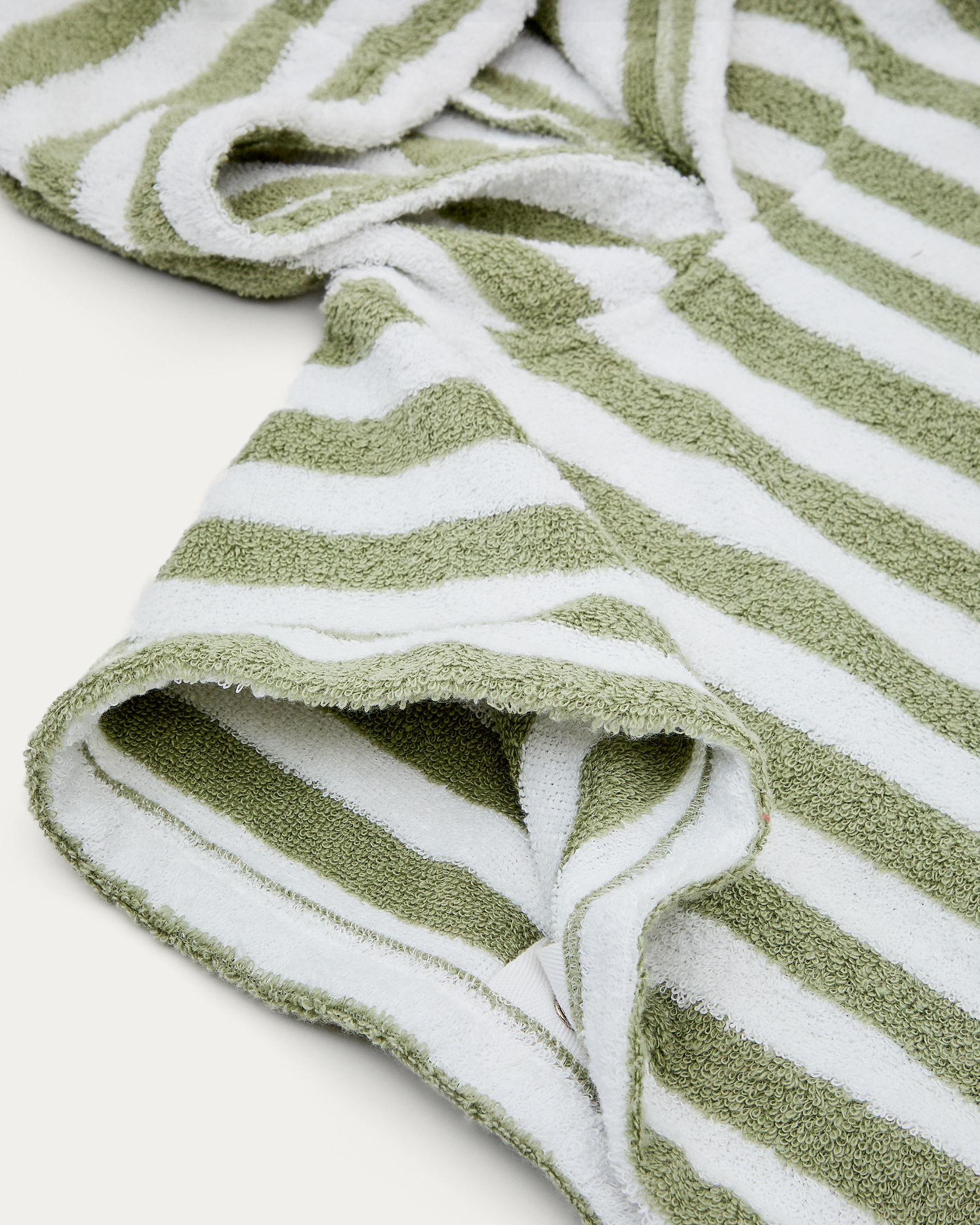 Nuni pamut ponchó törölköző fehér és zöld csíkokkal, 2-3 éves méret