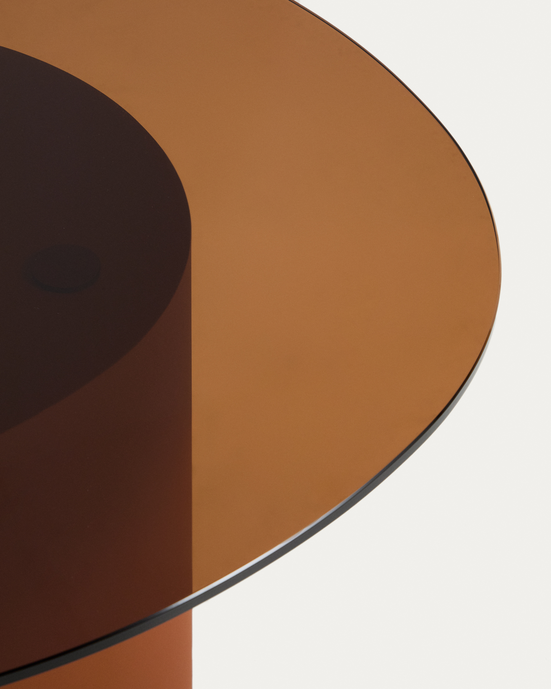 Olir oldalsó asztal barna acélból és edzett üvegből 82 x 74cm