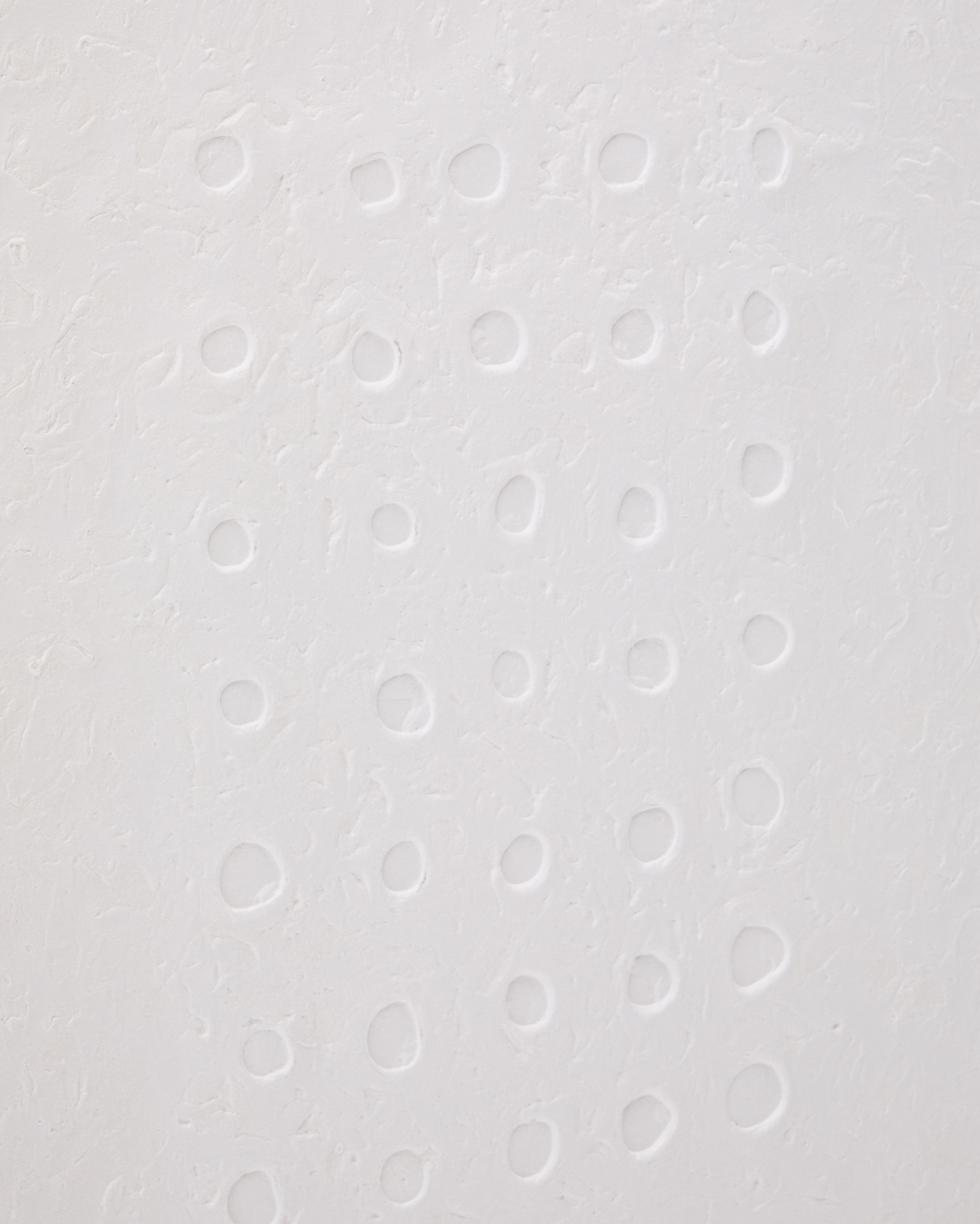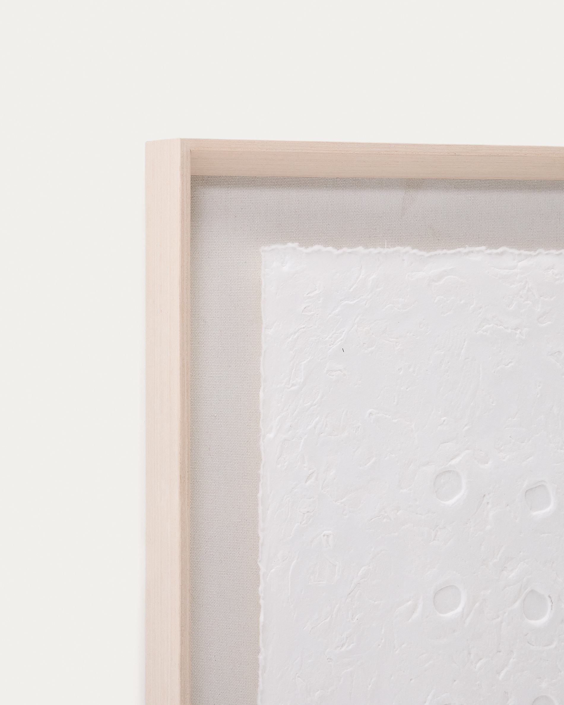 Olvin absztrakt kép fehér újrahasznosított papíron, kézzel készített reliefekkel 94 x 74 cm