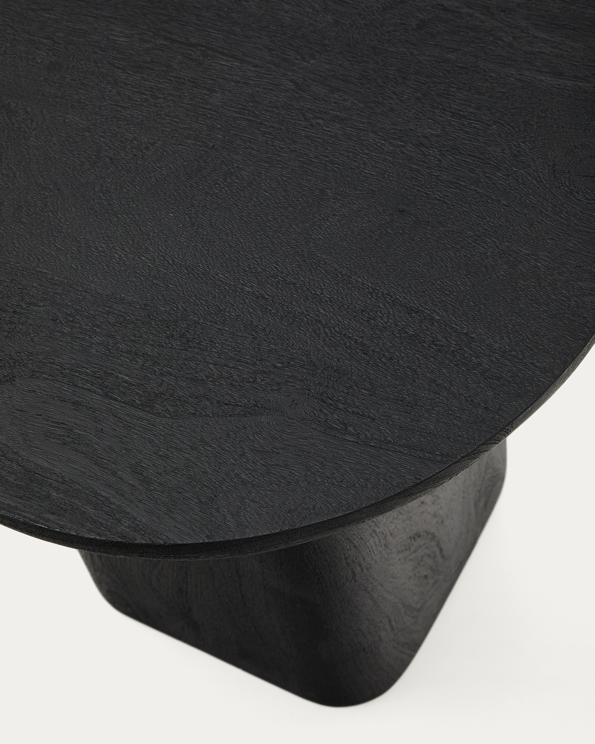 • A fekete felület kiemeli a fa textúráját és erezetét.