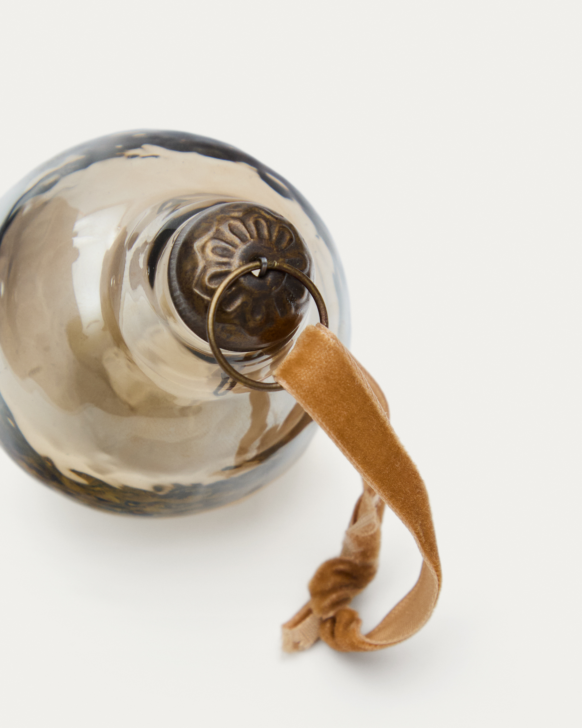 Piril szett 4 karácsonyi gömbből, barna újrahasznosított üveg, Ø 6 cm