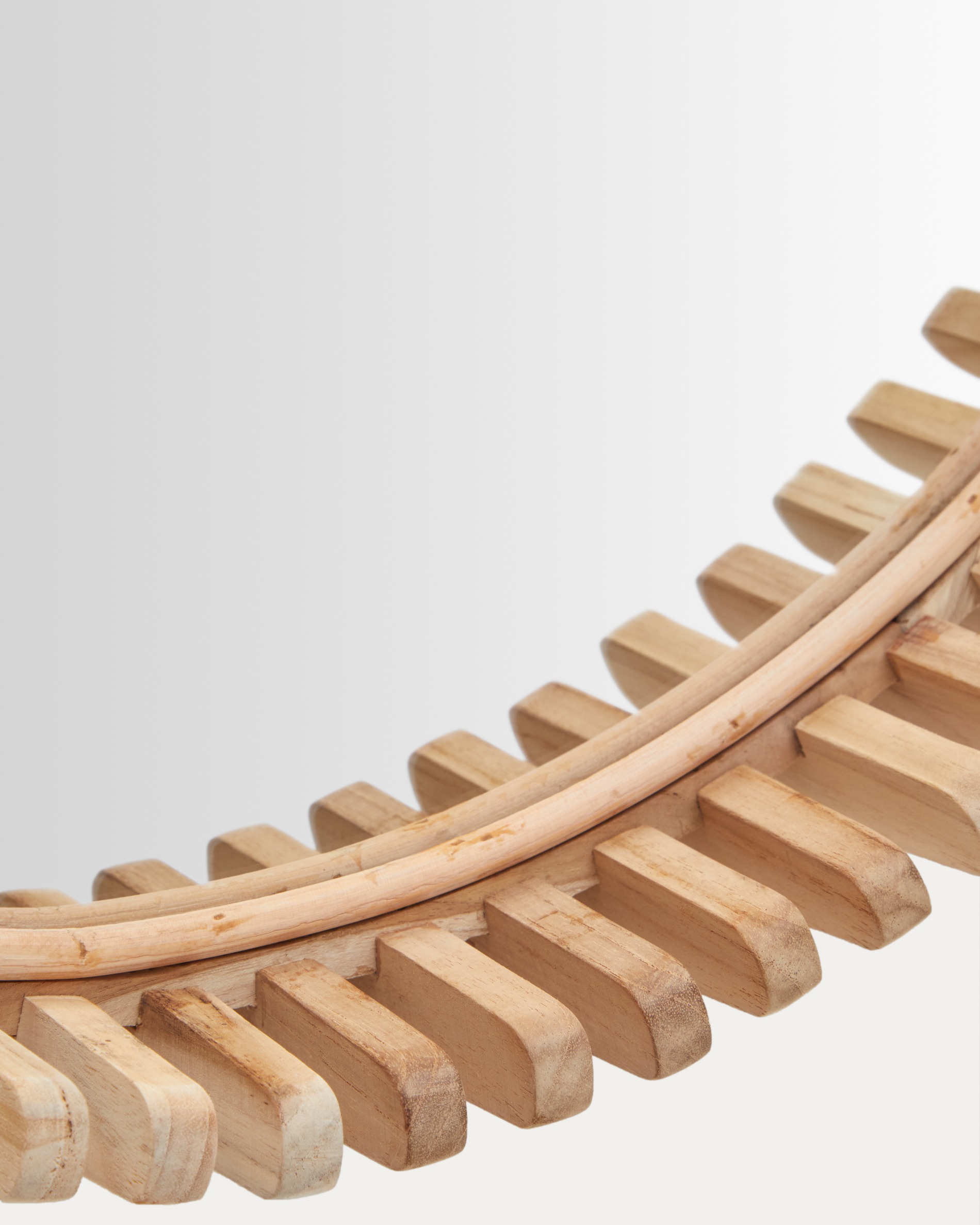 • Fa anyagból készült, így minden tükör egyedi, saját mintázatával és árnyalataival, mivel tömör és természetes anyag.