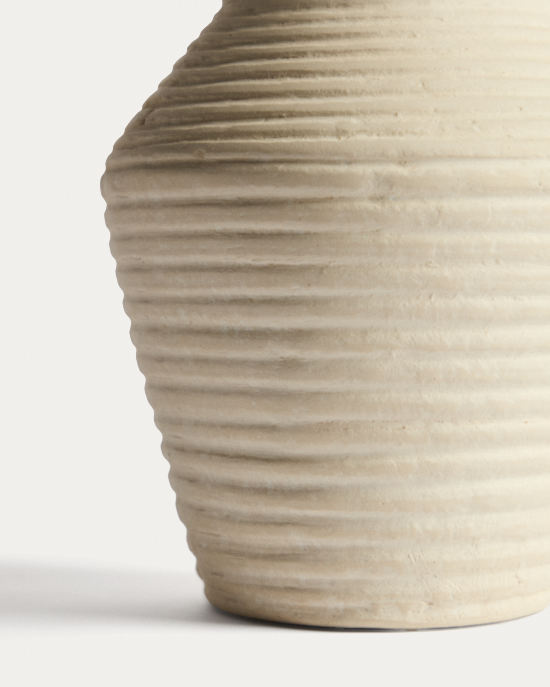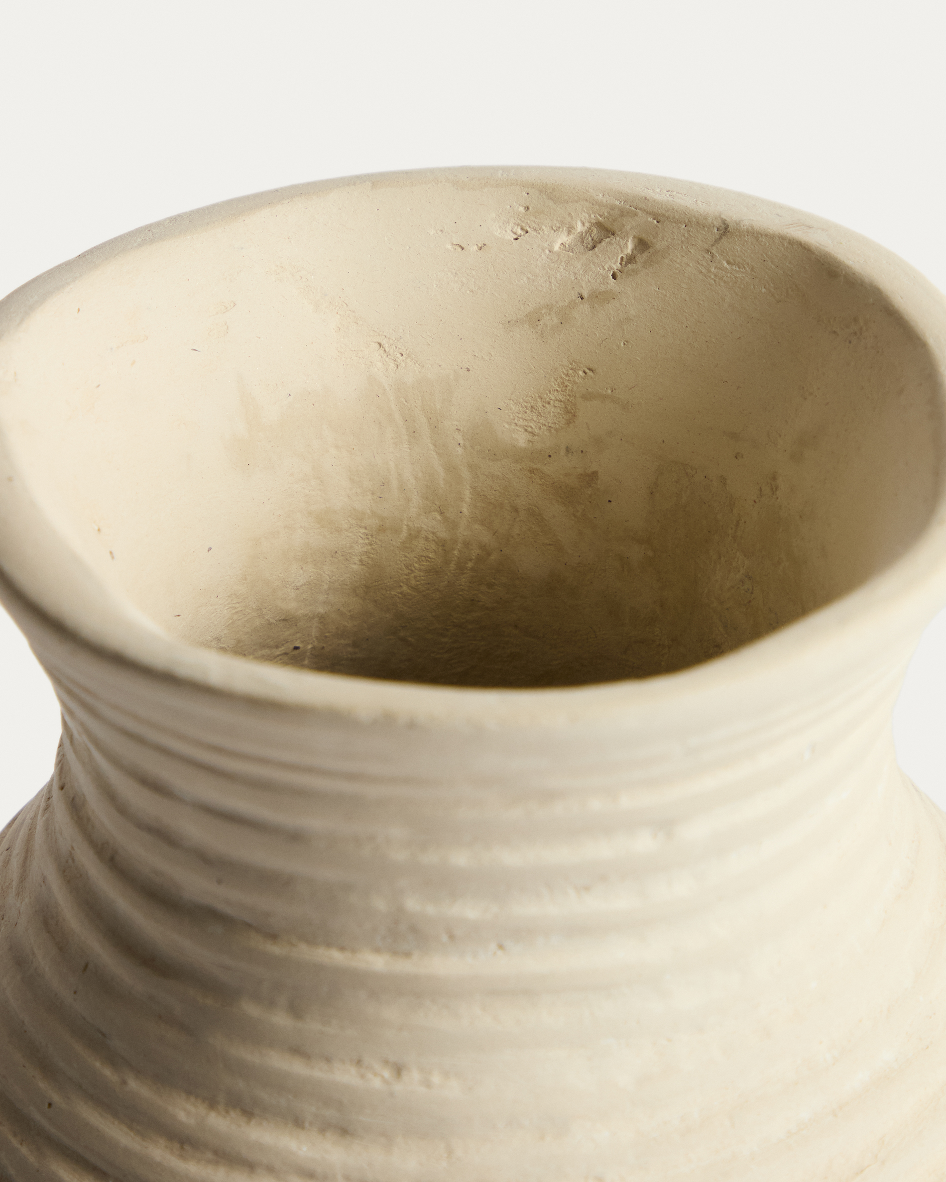 A Pria kollekció kézzel készített darabokból áll, újrahasznosított újságpapírból készült papírmaséval. Minden váza enyhe tónus- és befejezésbeli változatosságot mutat, a kézi készítés eredményeként, amely minden darabot egyedivé tesz. A texturált felület és az egyensúlyban lévő forma jelenlétet ad, és saját karakterrel rendelkező dekoratív elemekké teszi ezeket a vázákat.