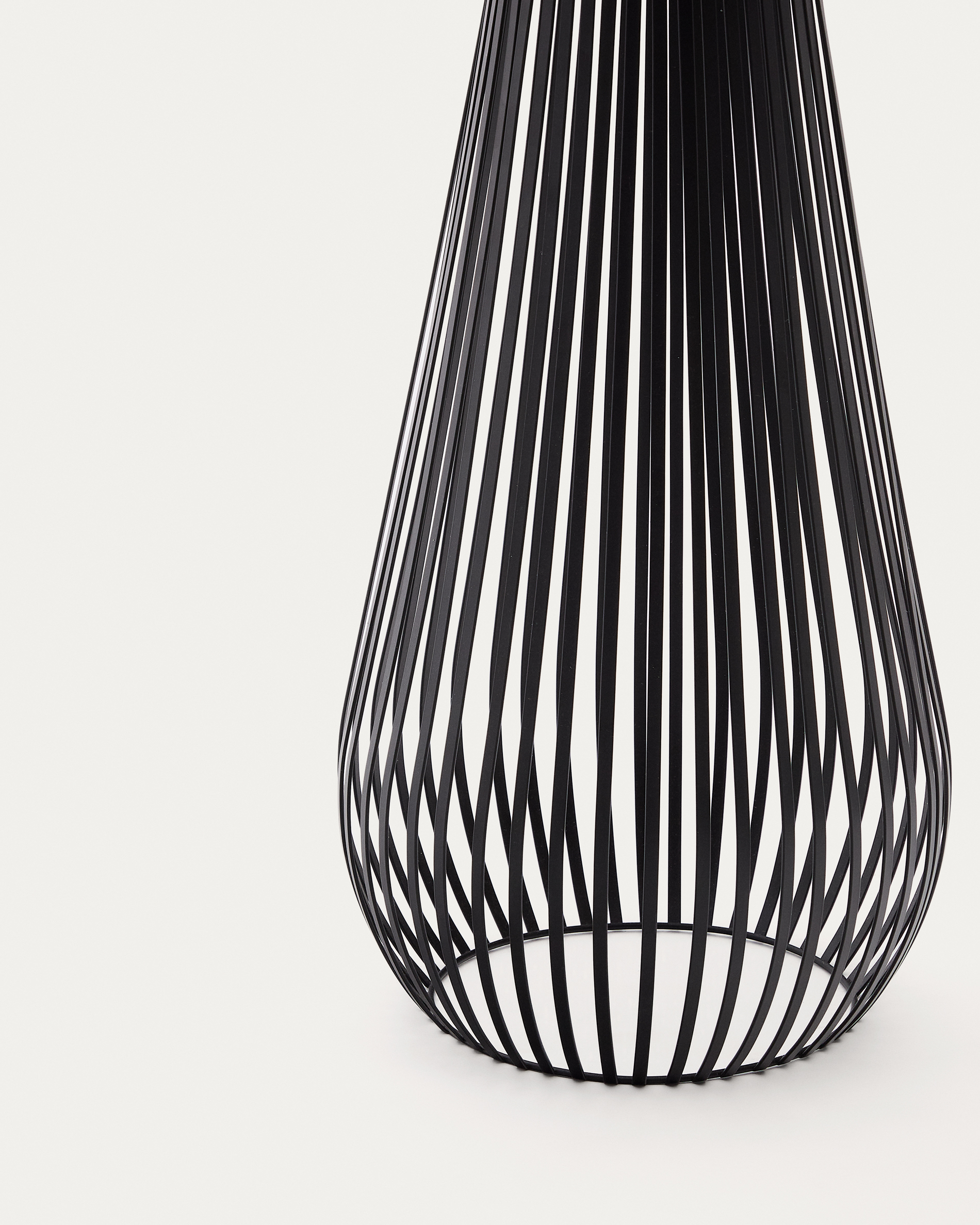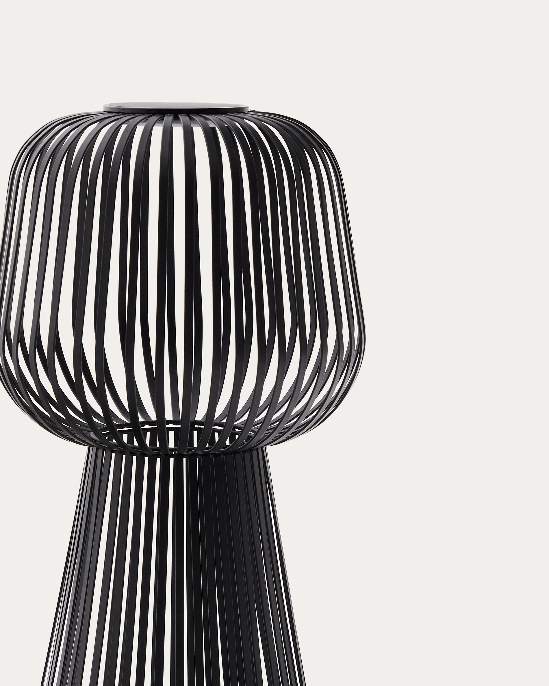 • Hordozható fekete fém padlólámpa integrált, levehető napelemes panellel.