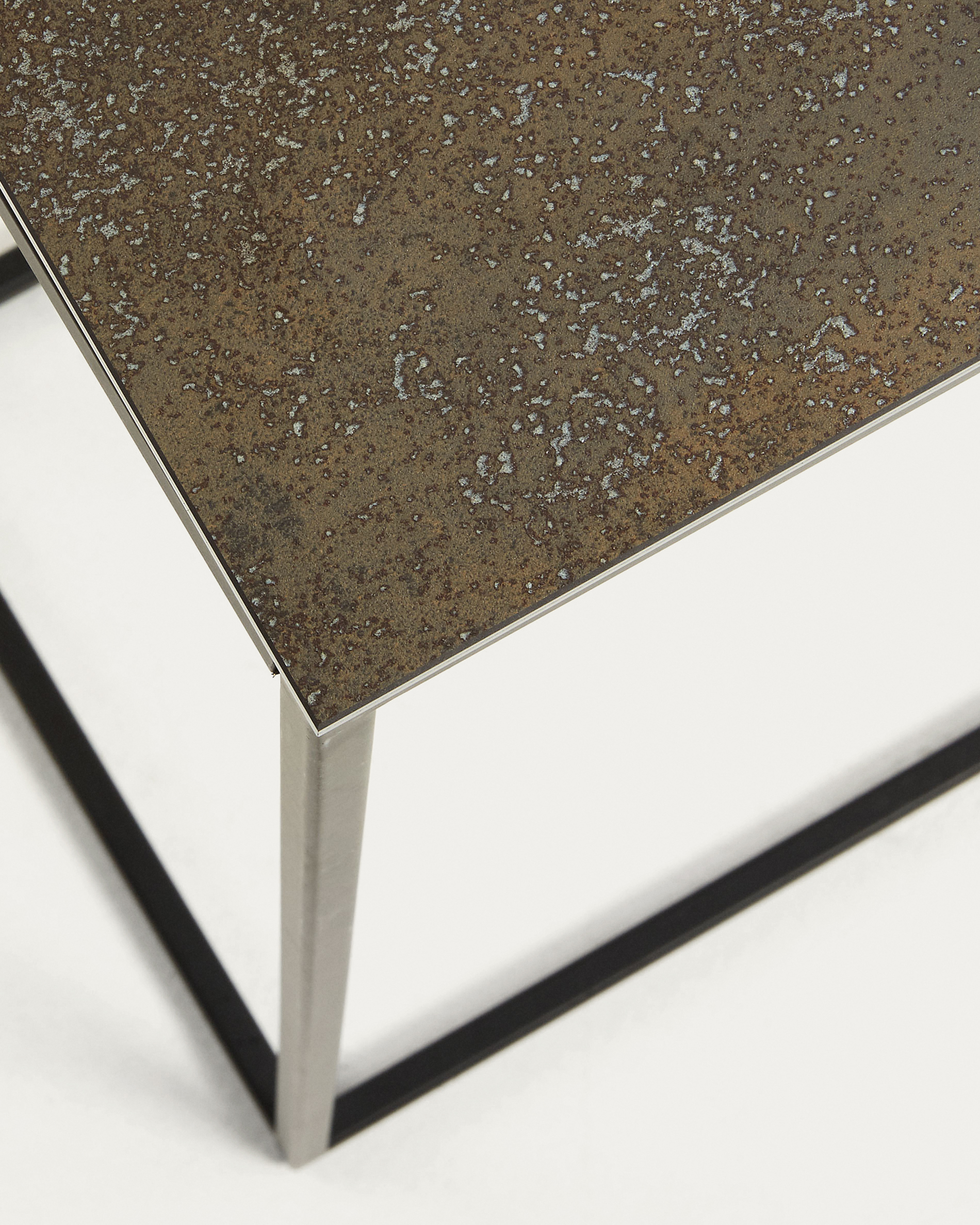 Rewena porcelán oldalsó asztal barna színben, fekete acél lábakkal, 45 x 30 cm