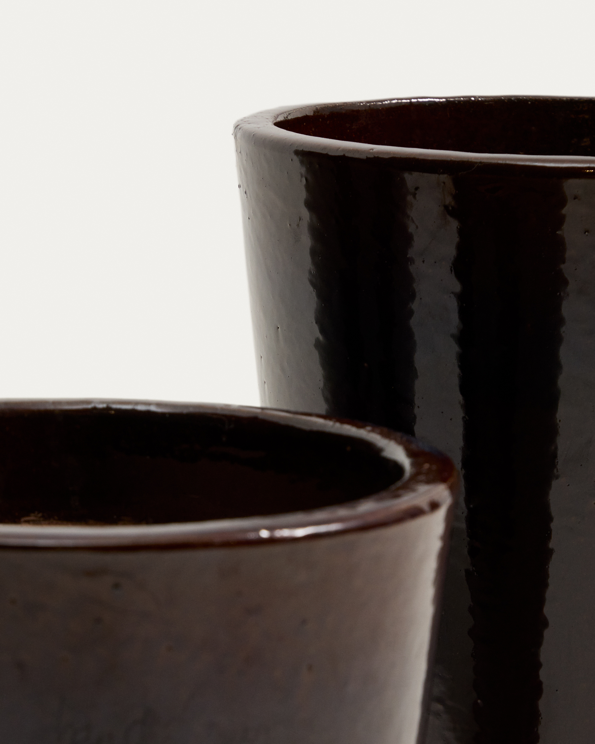 Rotja set of 3 terracotta planters with glazed garnet finish Ø 26 / 35 / 47 cm