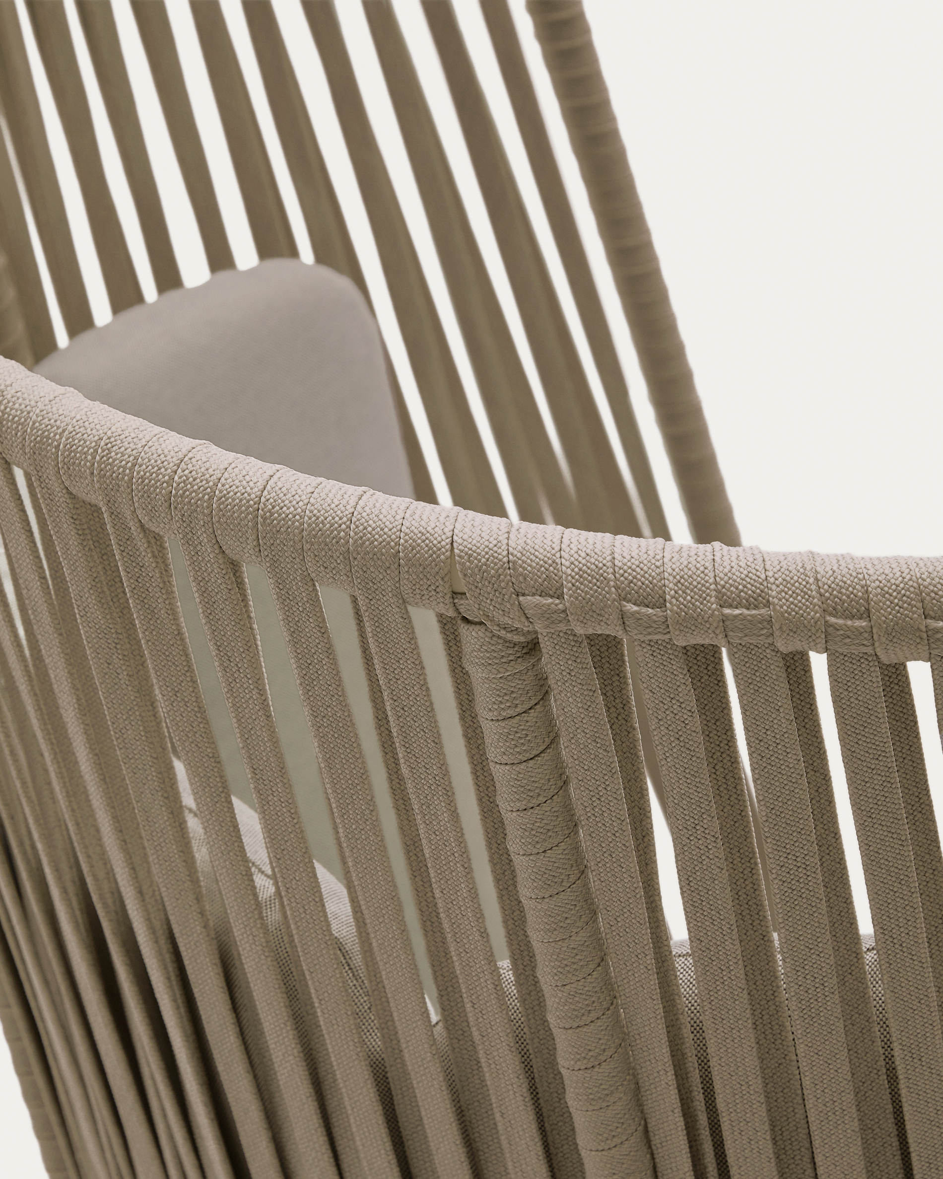 Saconca kültéri karosszék magas háttámlával kötélkötélből és bézs galvanizált acélból