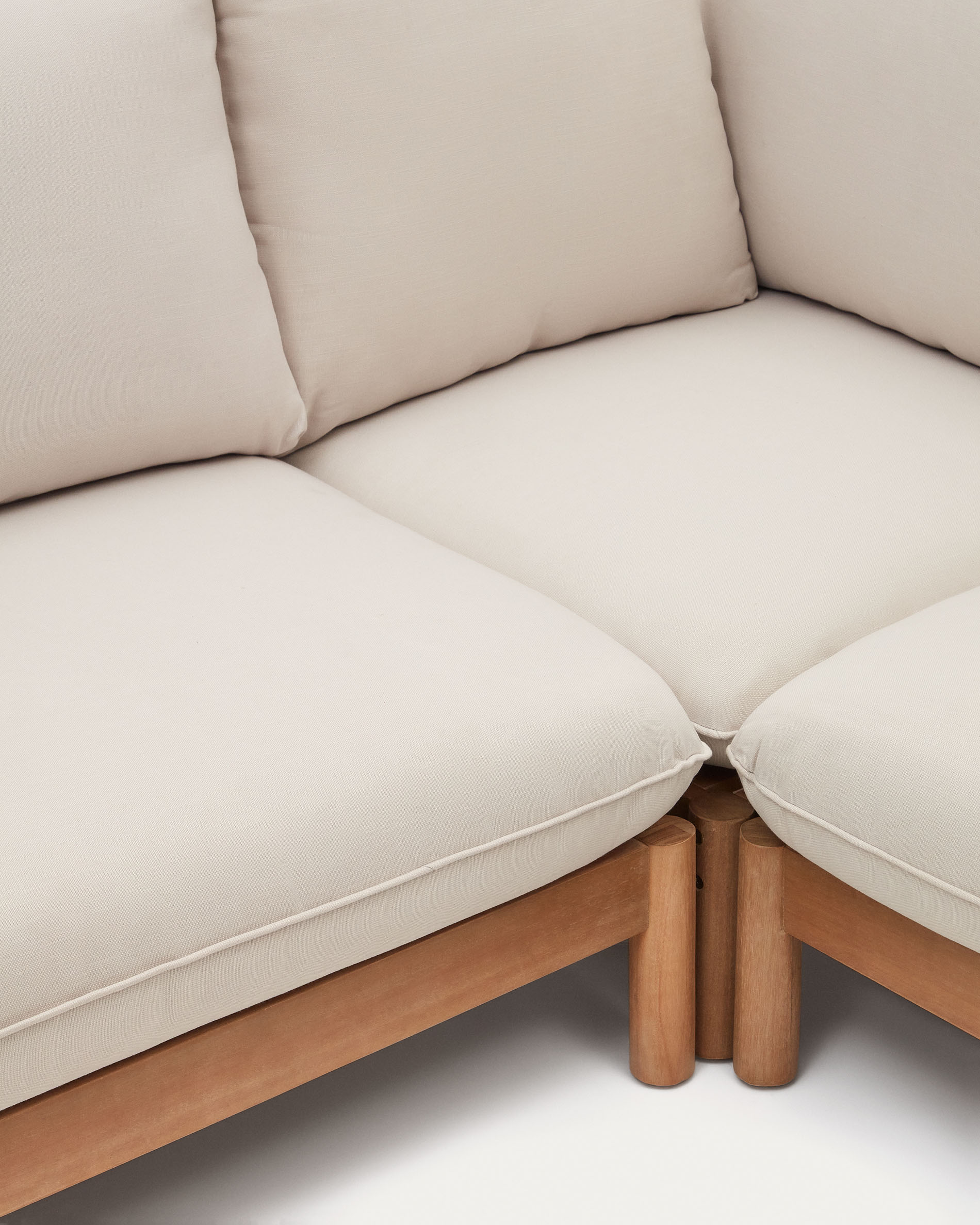 Sacova szett, 5 személyes sarokkanapé és dohányzóasztal tömör eucalyptusfából
