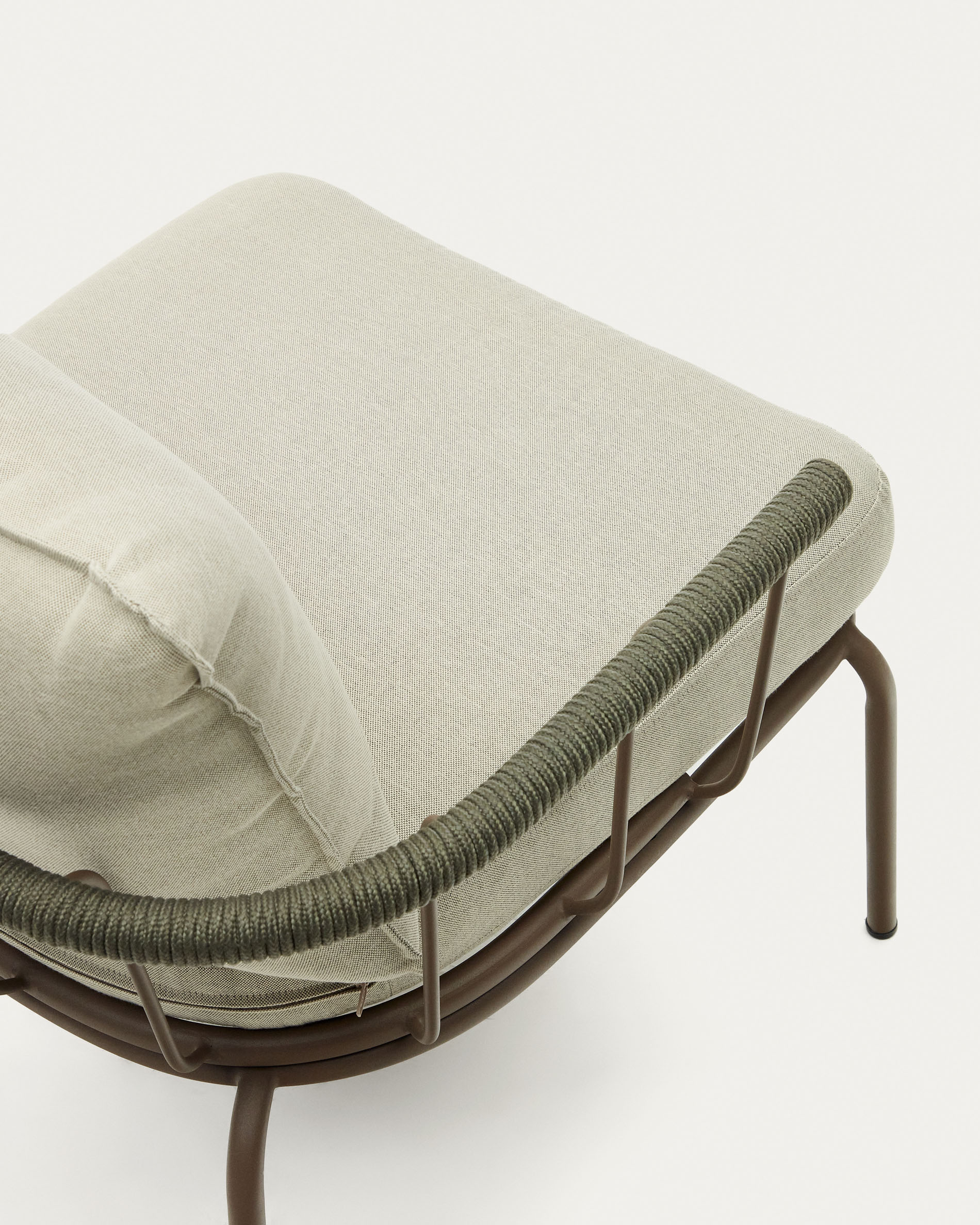 Salguer zöld kötél és acél karfás szék barna festett felülettel