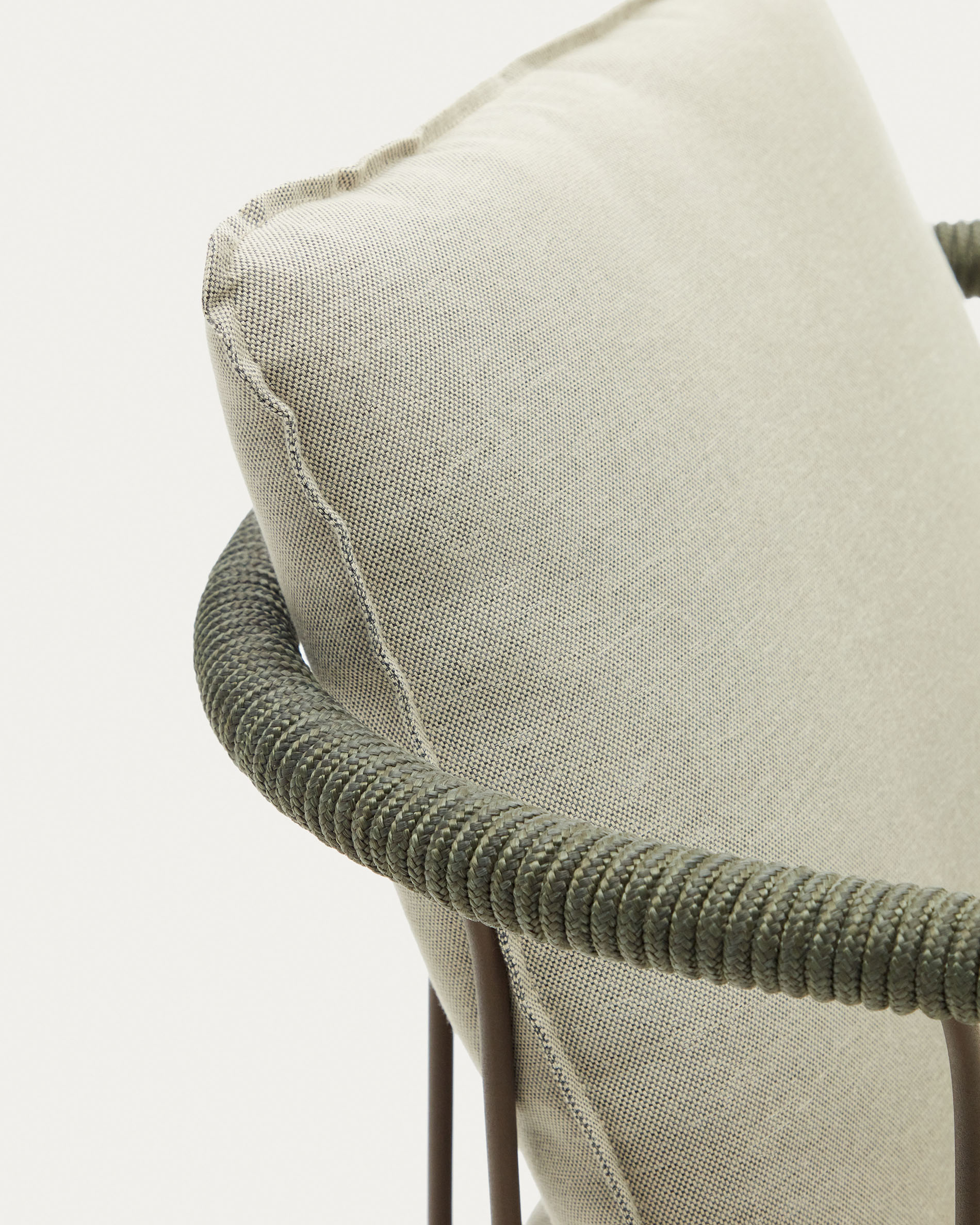 • Galvanizált acél szék kötél díszítéssel a háttámlán.