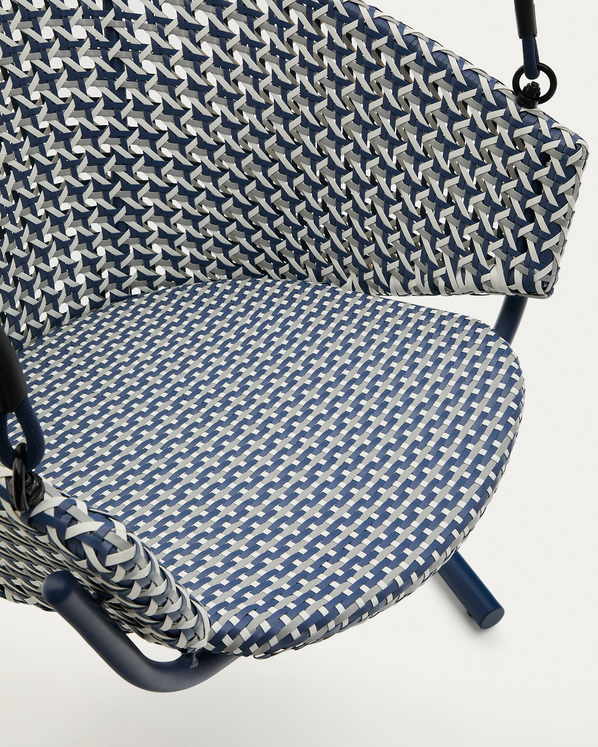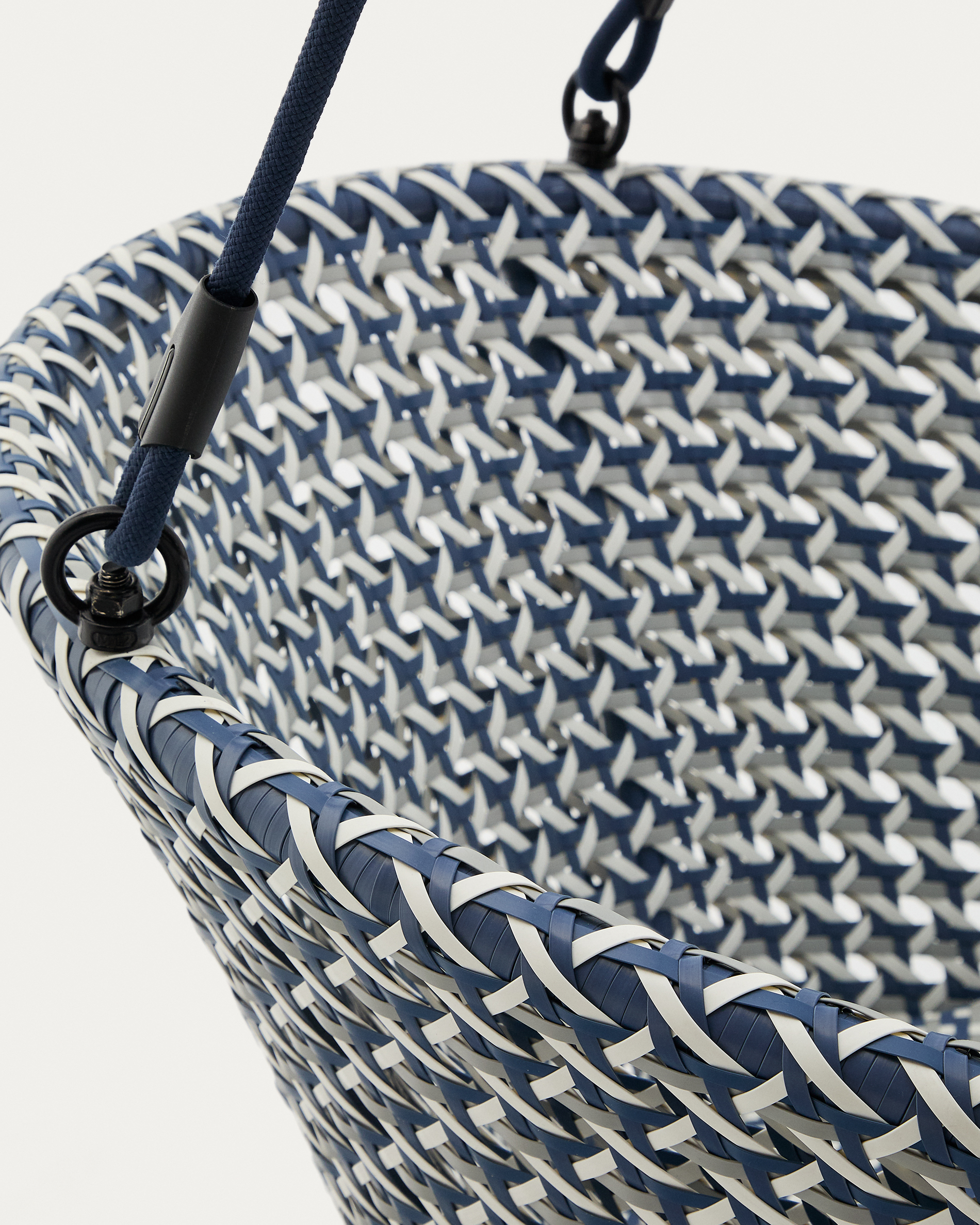 Saliga kék függő karosszék alumínium szerkezetben és szintetikus rattanból