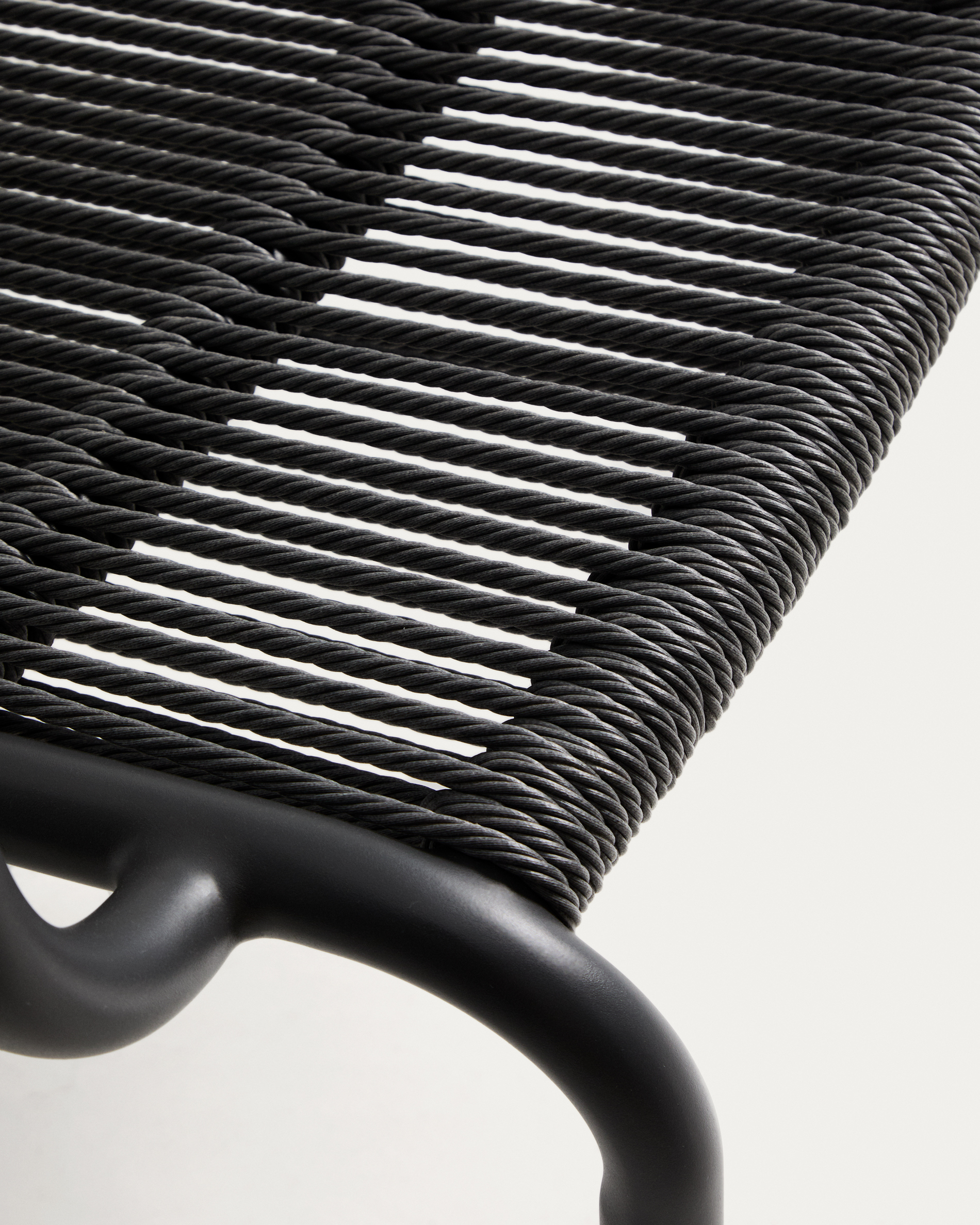 • Kézi szövésű szintetikus kötél háttámla, kültéri használatra.