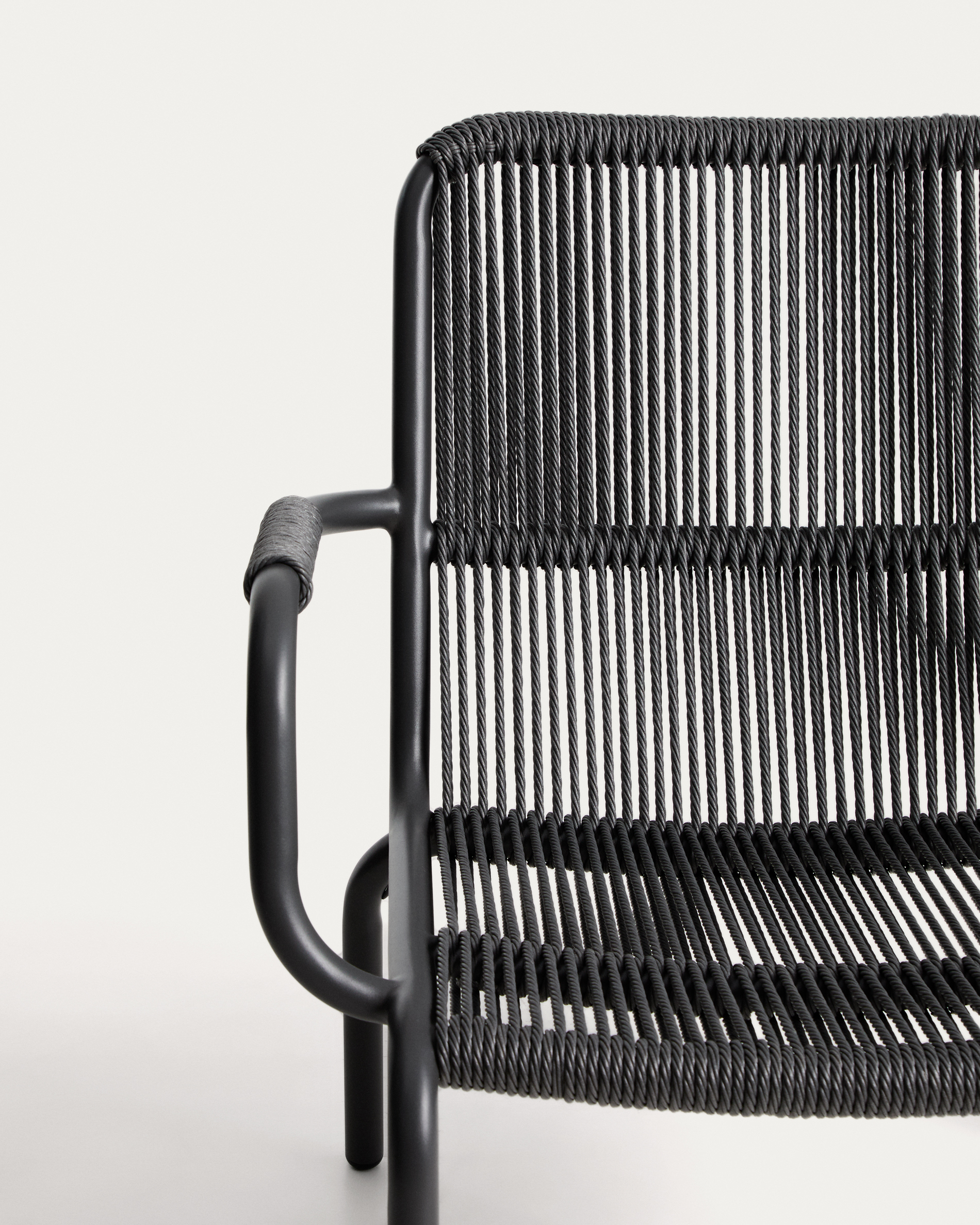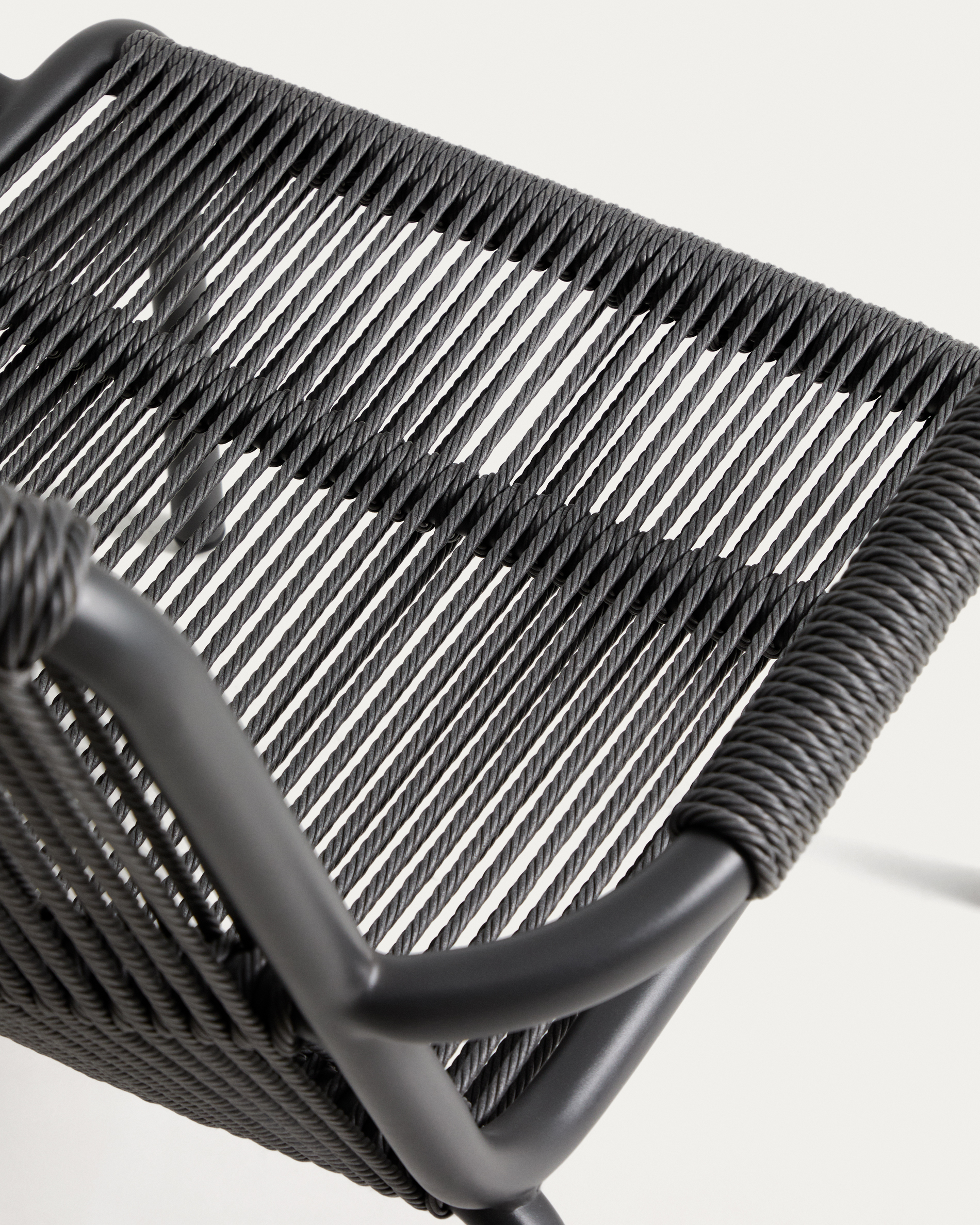 Salis rakásolható karfás szék grafit alumíniumból és sötétszürke szintetikus kötélből