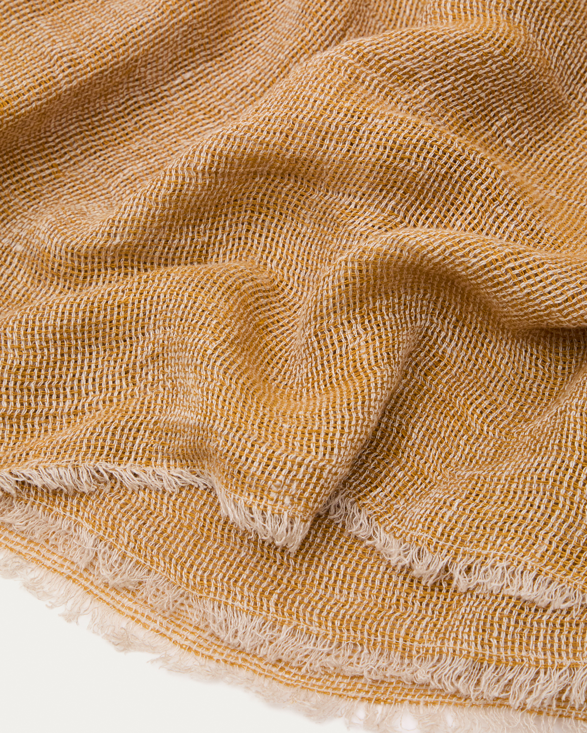 Sanae mustár 100% len takaró rojtozással 130 x 170cm