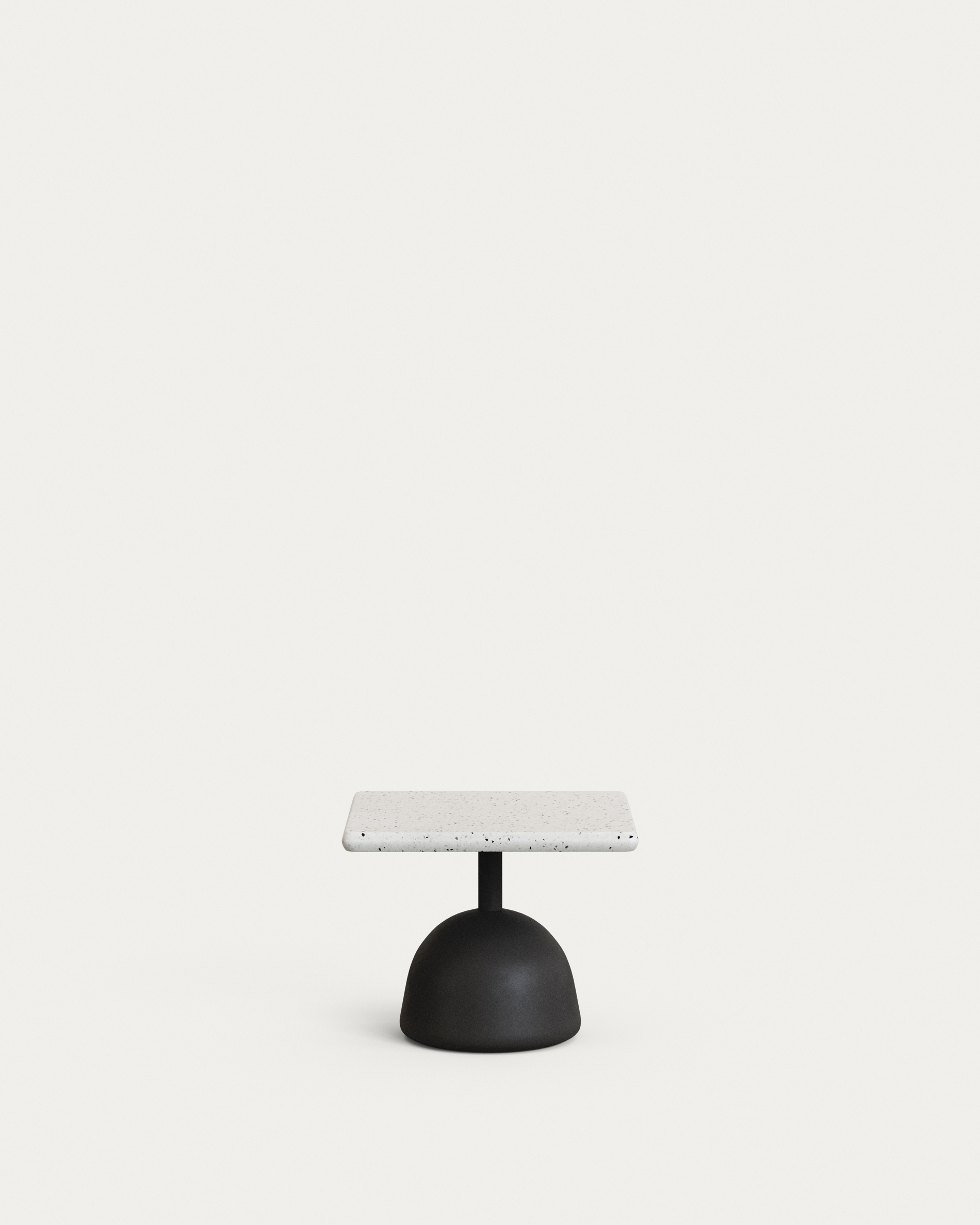 Saura dohányzóasztal fehér terrazzo top és fekete cement alap 44x44x35cm