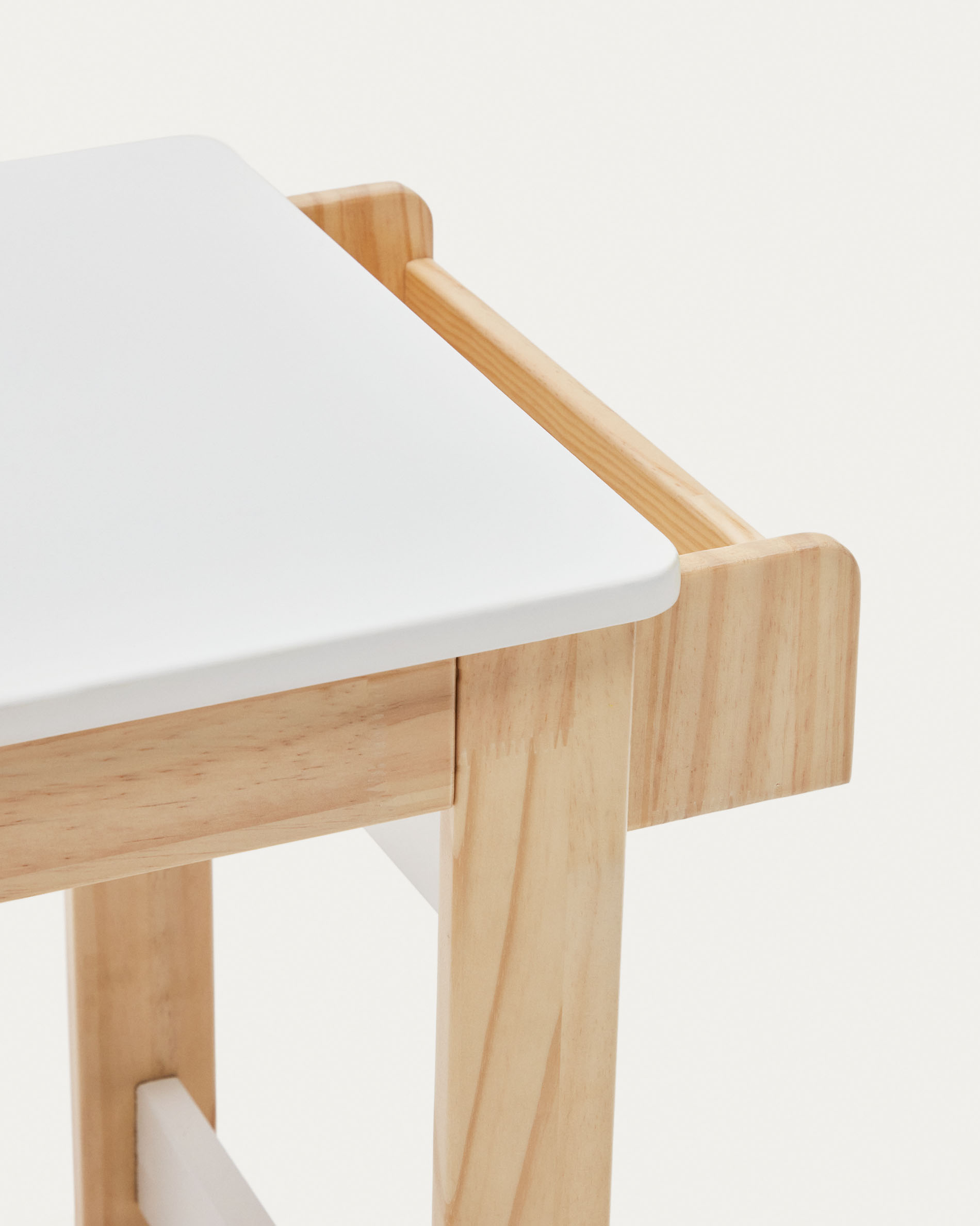 Serwa íróasztal fehér MDF, tömör fenyő lábakkal és részletekkel