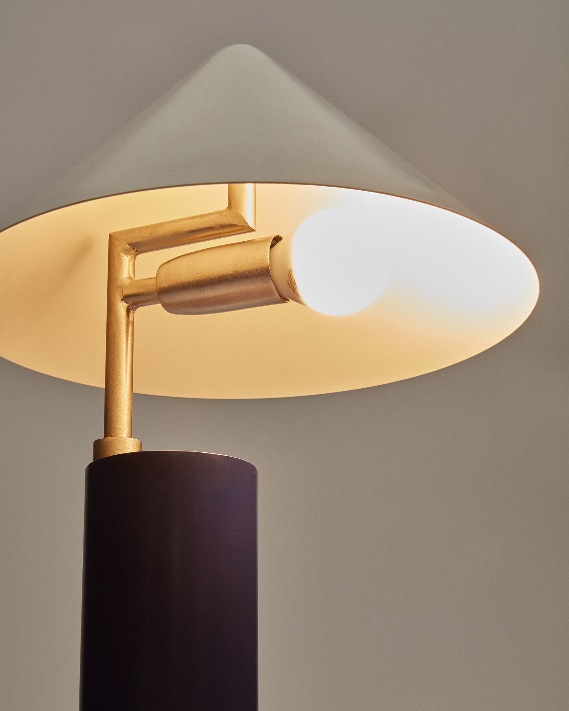 • Fém asztali lámpa festett kék és fehér felülettel.