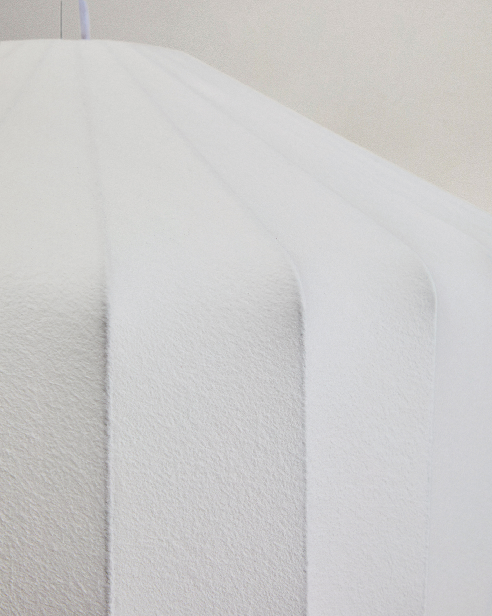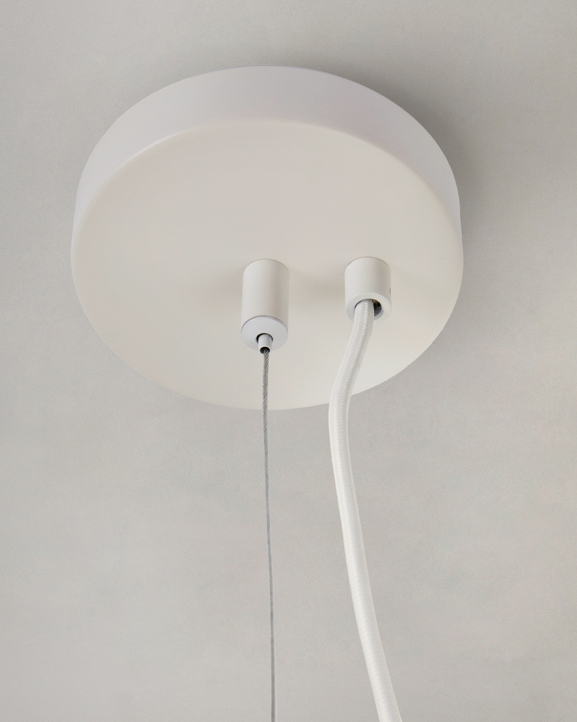 • Ceiling lamp with synthetic fibre lampshade and steel rods.