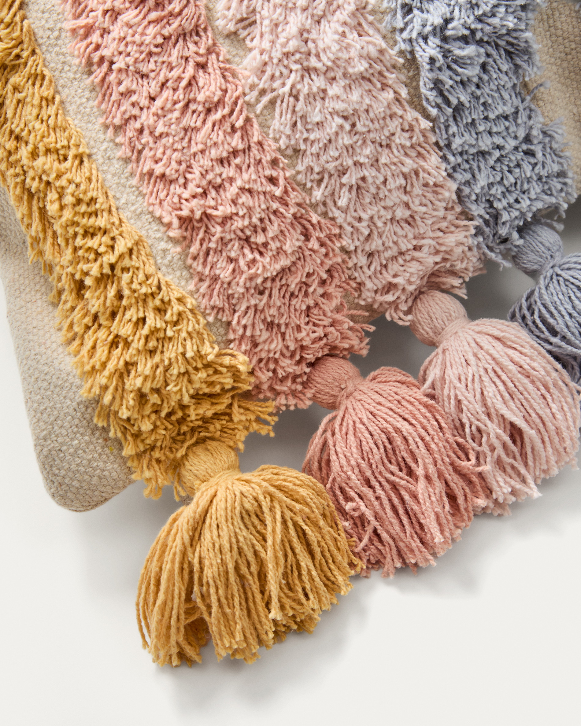 • Puha tapintás szivárvány alakú reliefekkel és rojtozással.