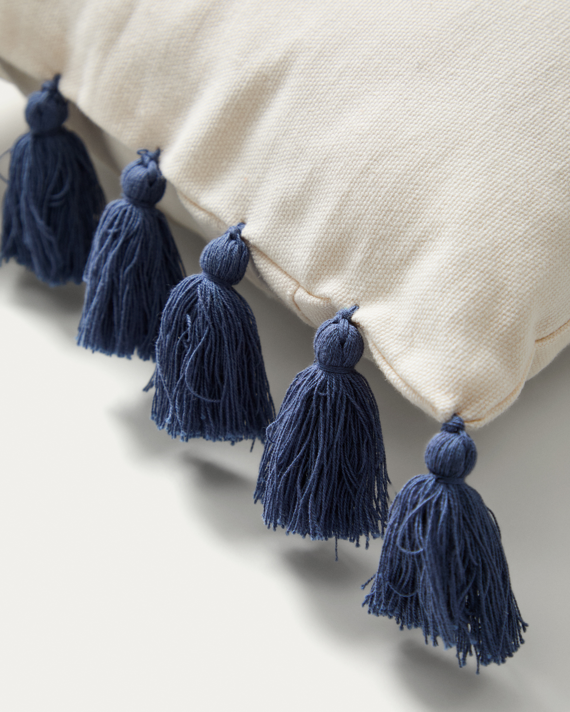 Tandani bézs pamutszövet díszpárnahuzat hímzett kék elefánttal 30 x 50cm