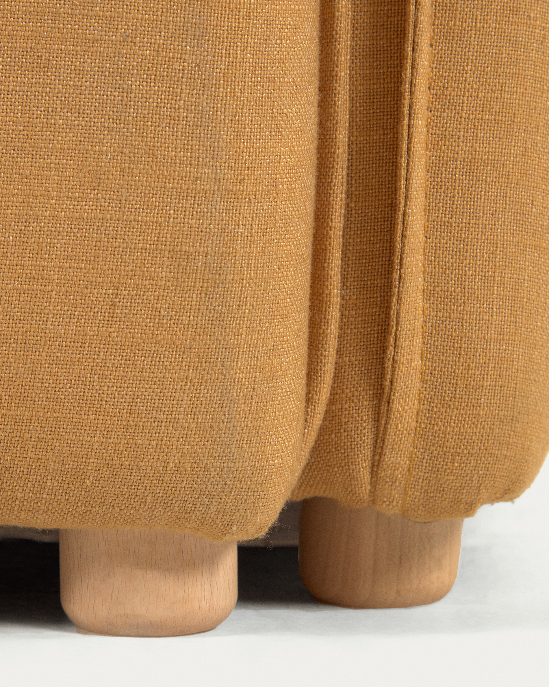 Tanit kanapéágy mustár színben, természetes beech fa lábakkal, FSC Mix Credit