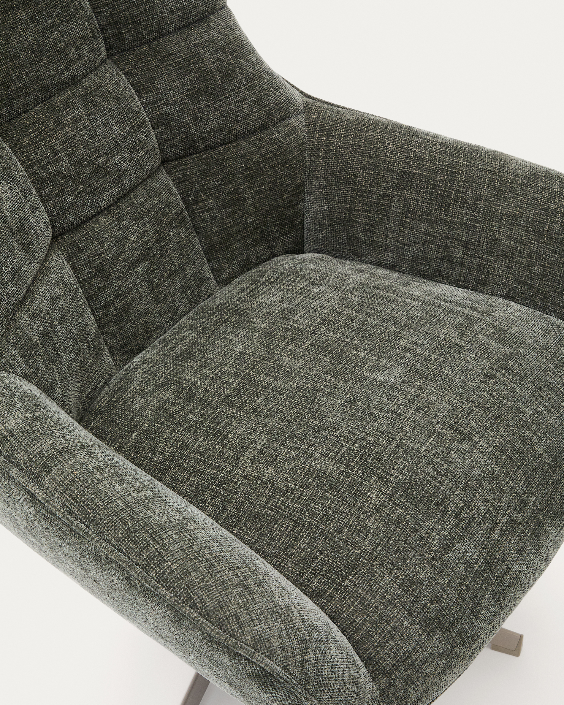 Teryl forgó zöld chenille karosszék szürke felületű fémből, FSC 100%