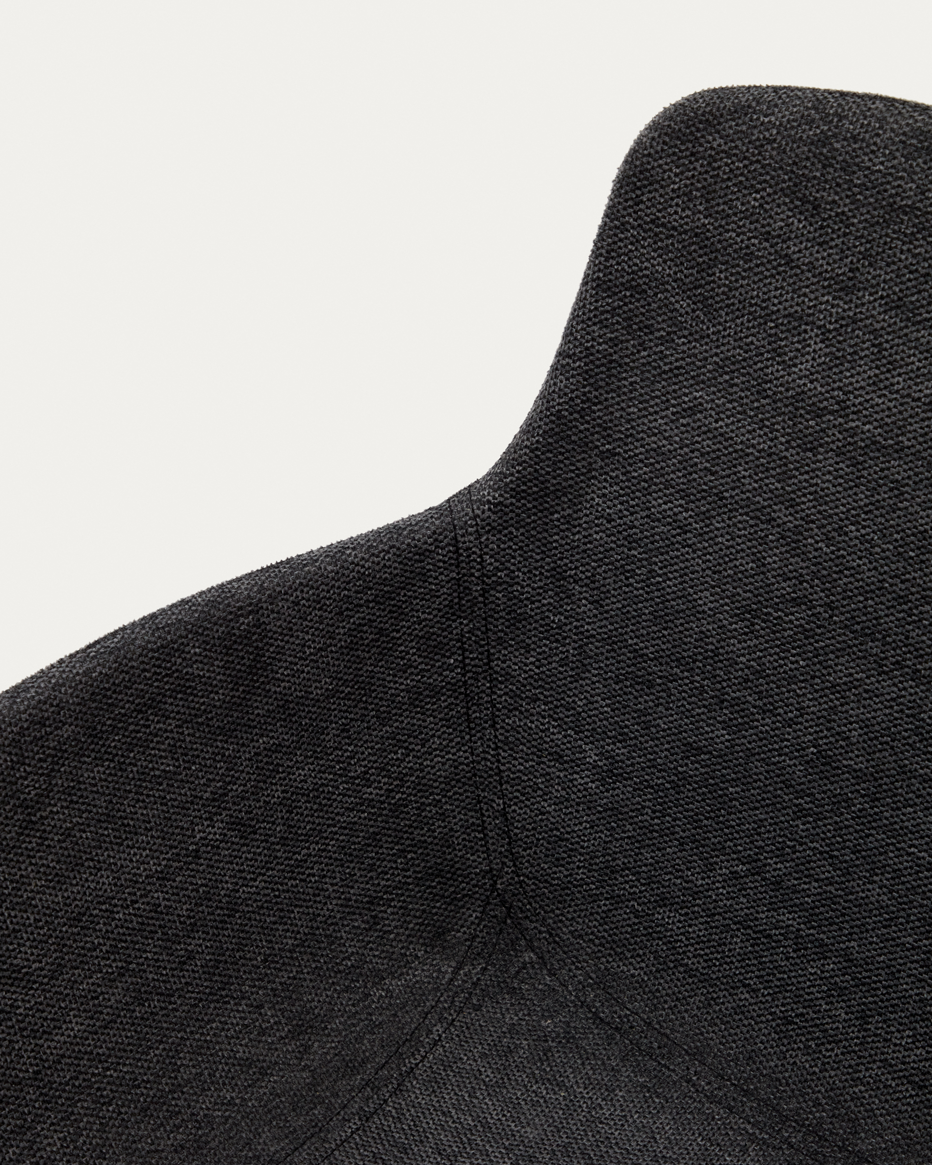 • Íróasztali szék sötétszürke chenille borítással és matt fekete acél lábakkal.