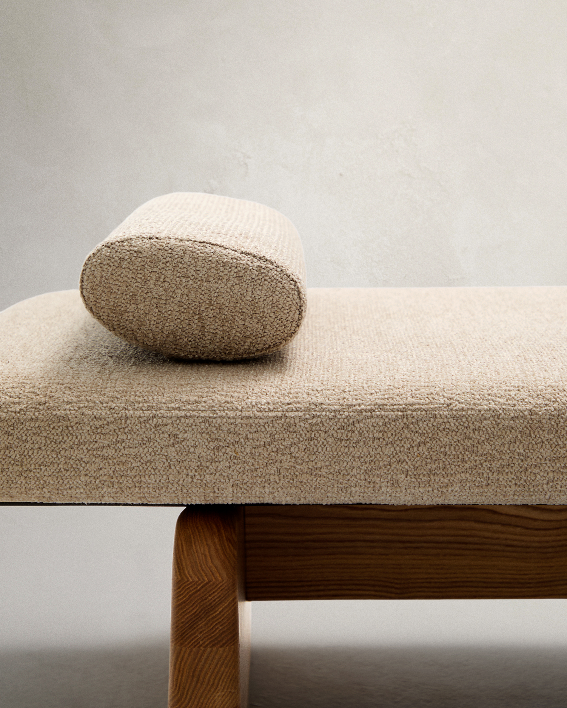 • Ágytartó vastag, bézs chenille szövettel és újrahasznosított poliészterrel kárpitozva.