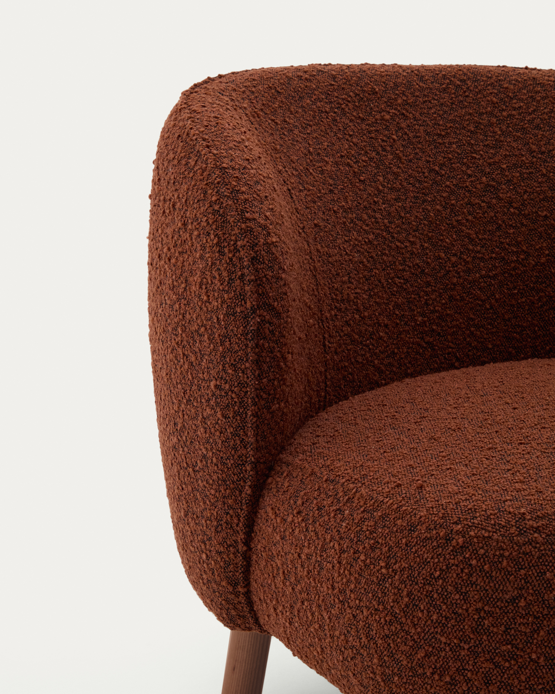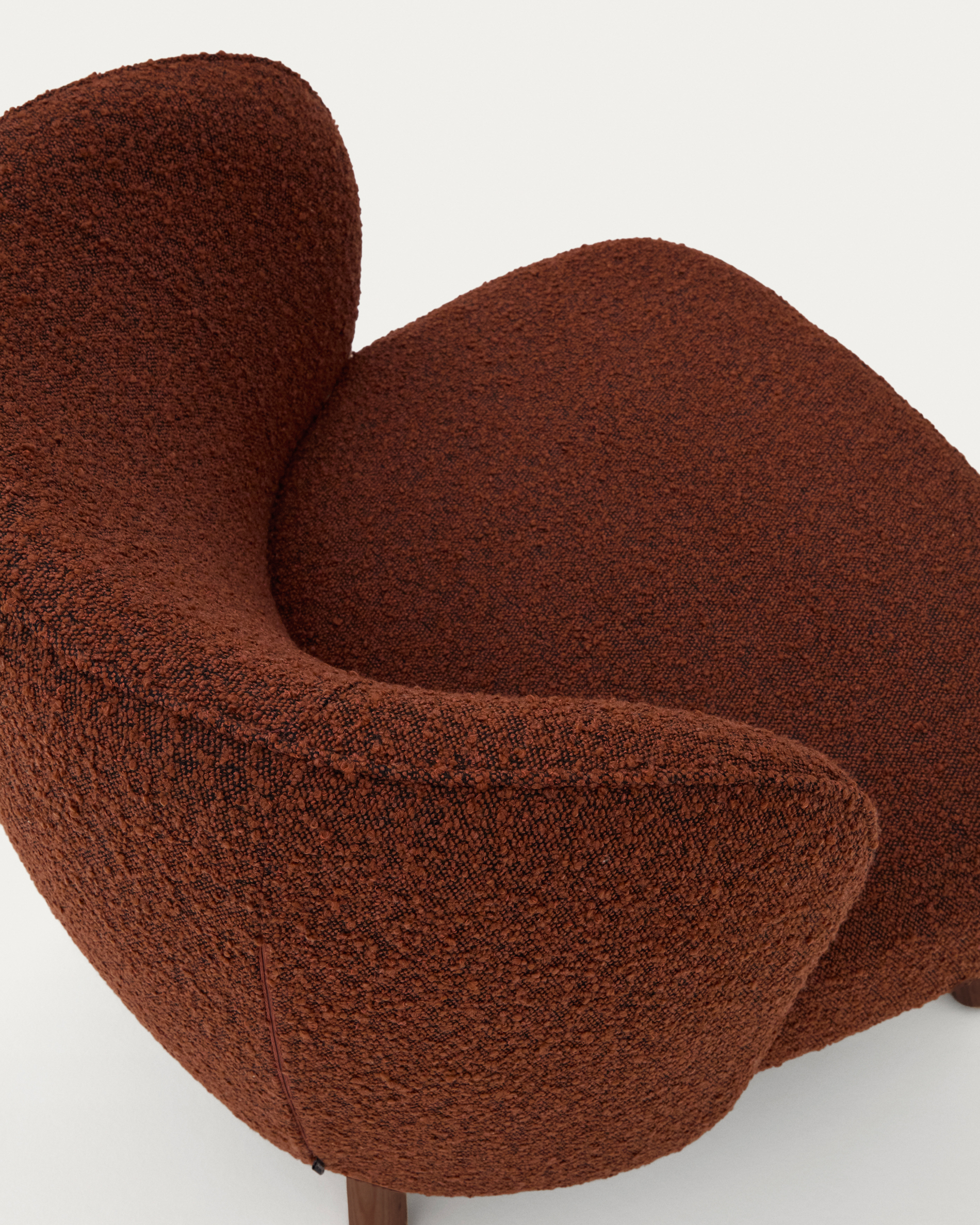 Ulit armchair in terracotta bouclé with solid ash wood legs in a walnut finish