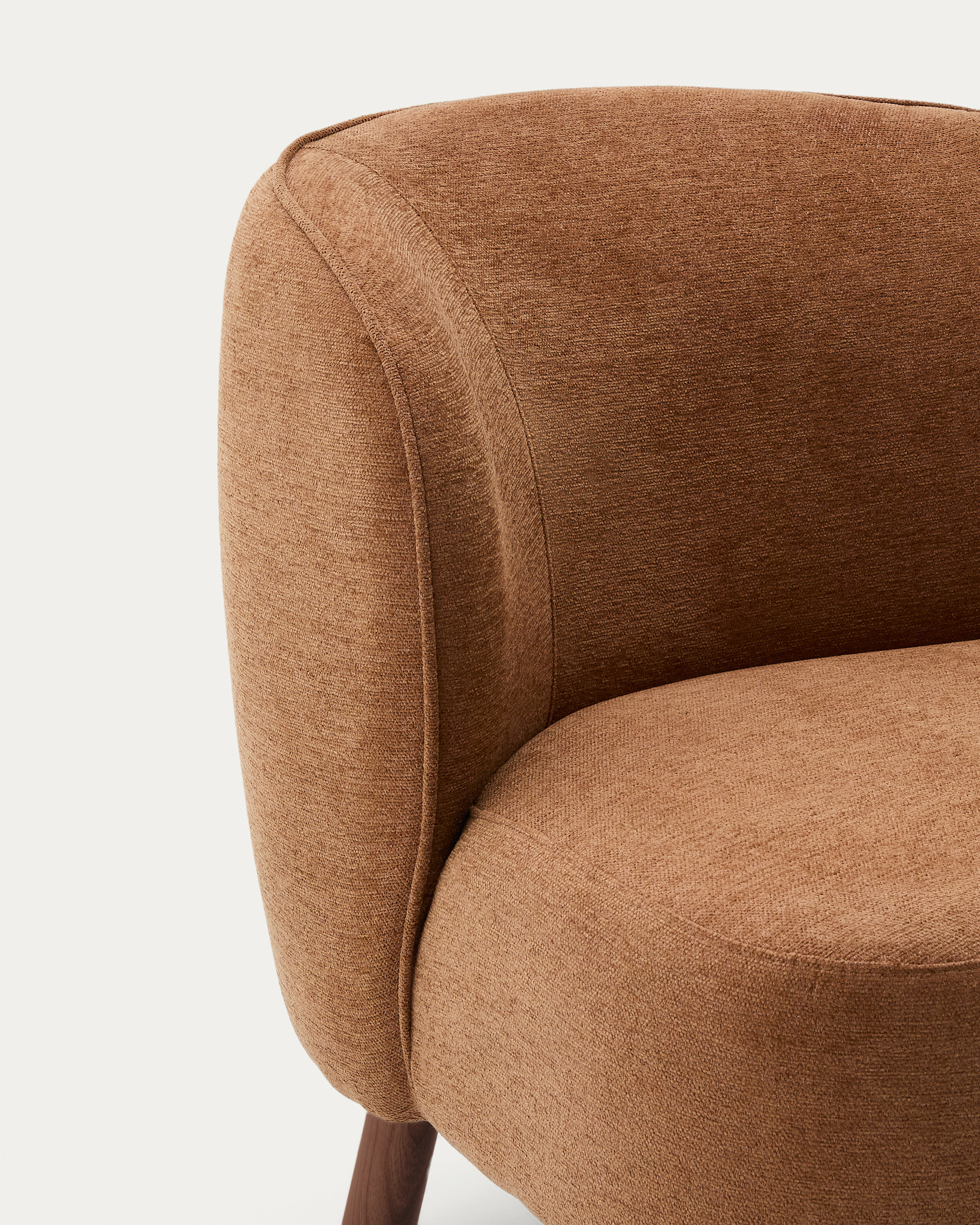 Ulit armchair in terracotta chenille with solid ash wood legs with walnut finish