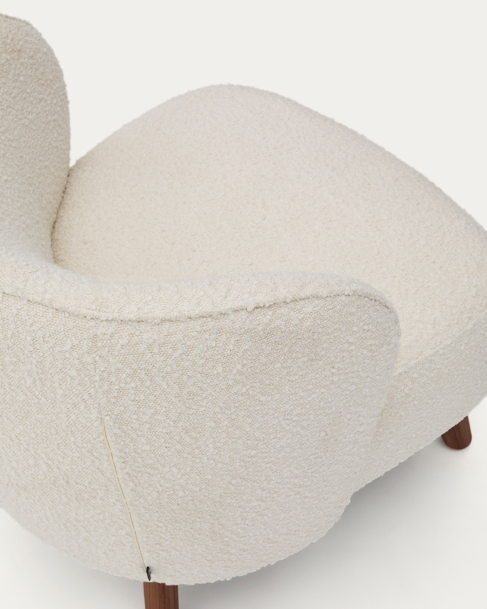 Ulit armchair in white bouclé with solid ash wood legs in a walnut finish