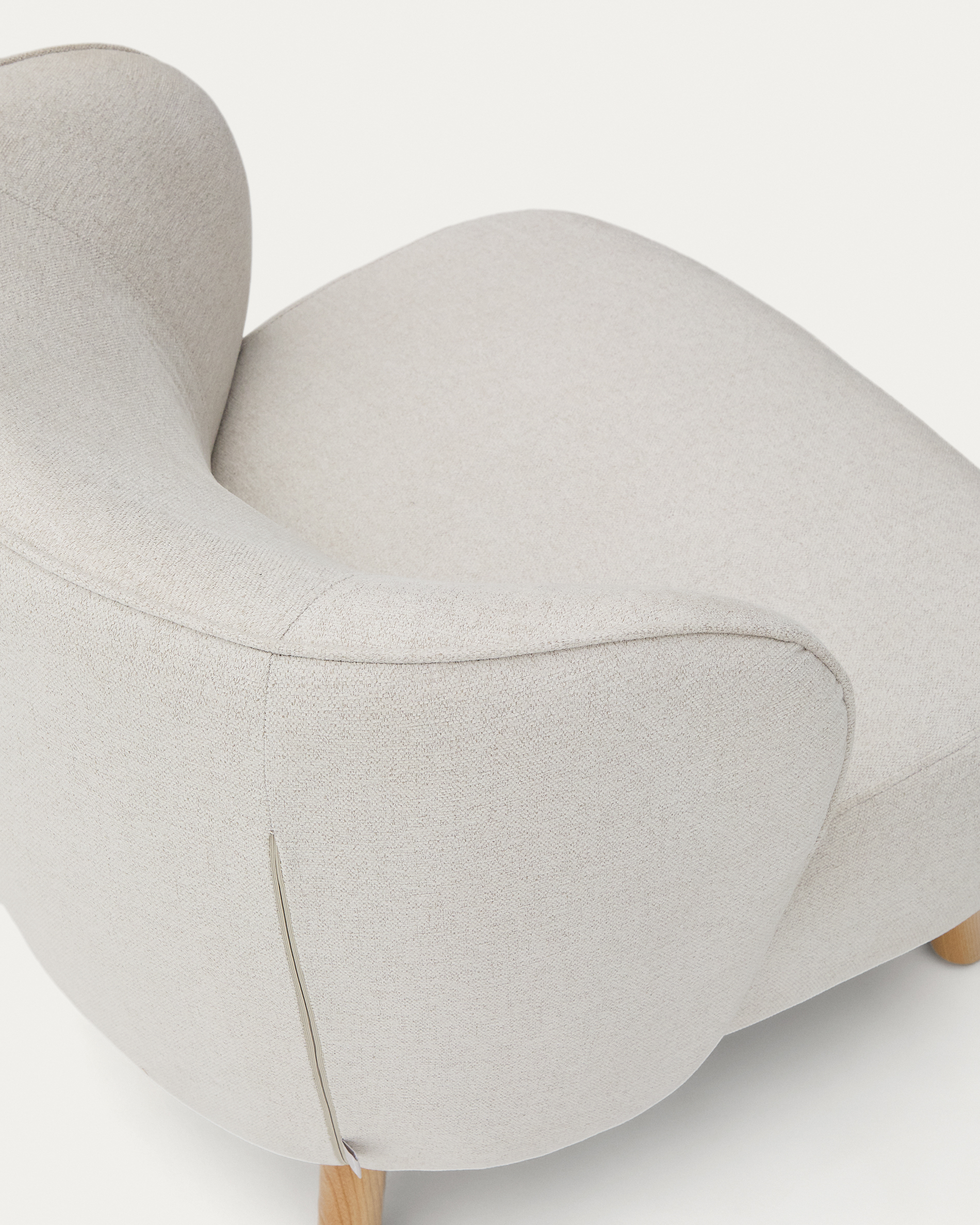 Ulit karosszék bézs chenille anyagból, természetes kivitelű tömör bükkfa lábakkal