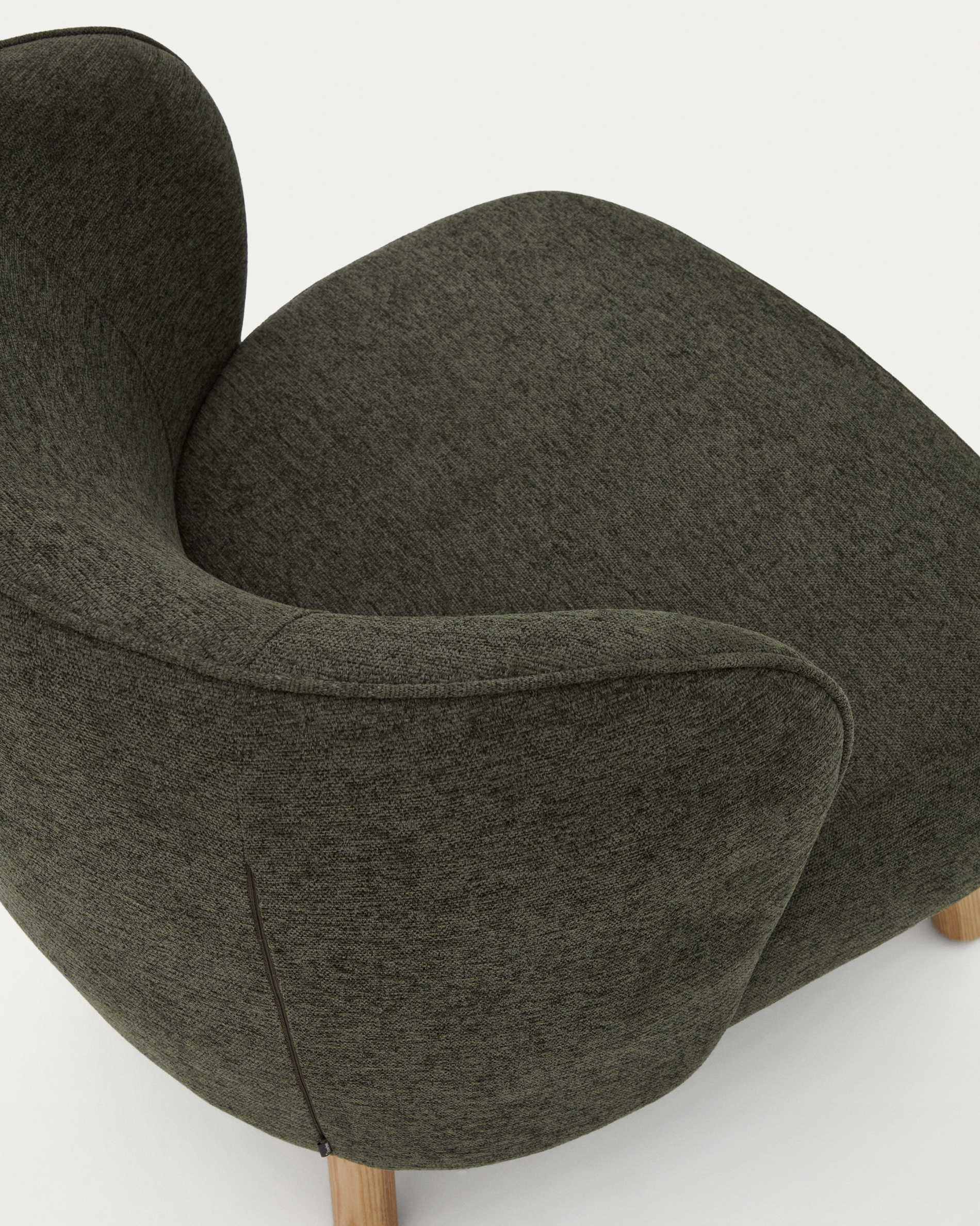 Ulit karfás szék zöld chenille anyagból, tömör bükkfa lábakkal természetes felülettel