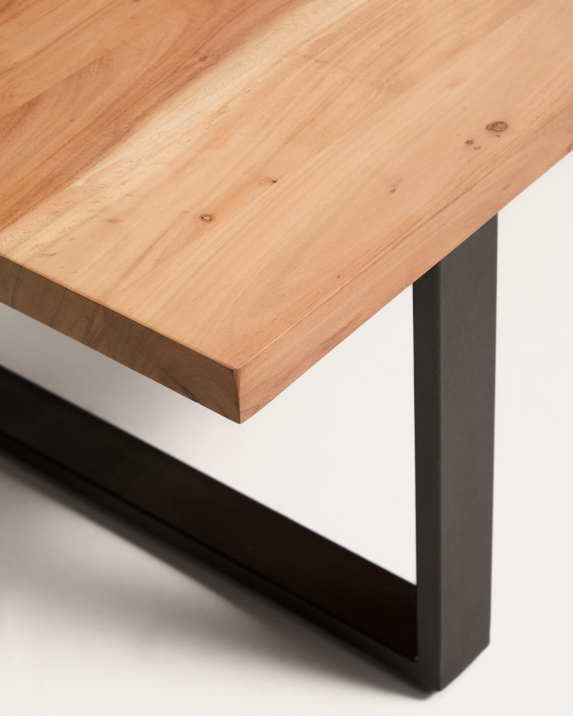 Uxue kávézóasztal tömör acaciafából fekete acél lábakkal 130 x 64 cm