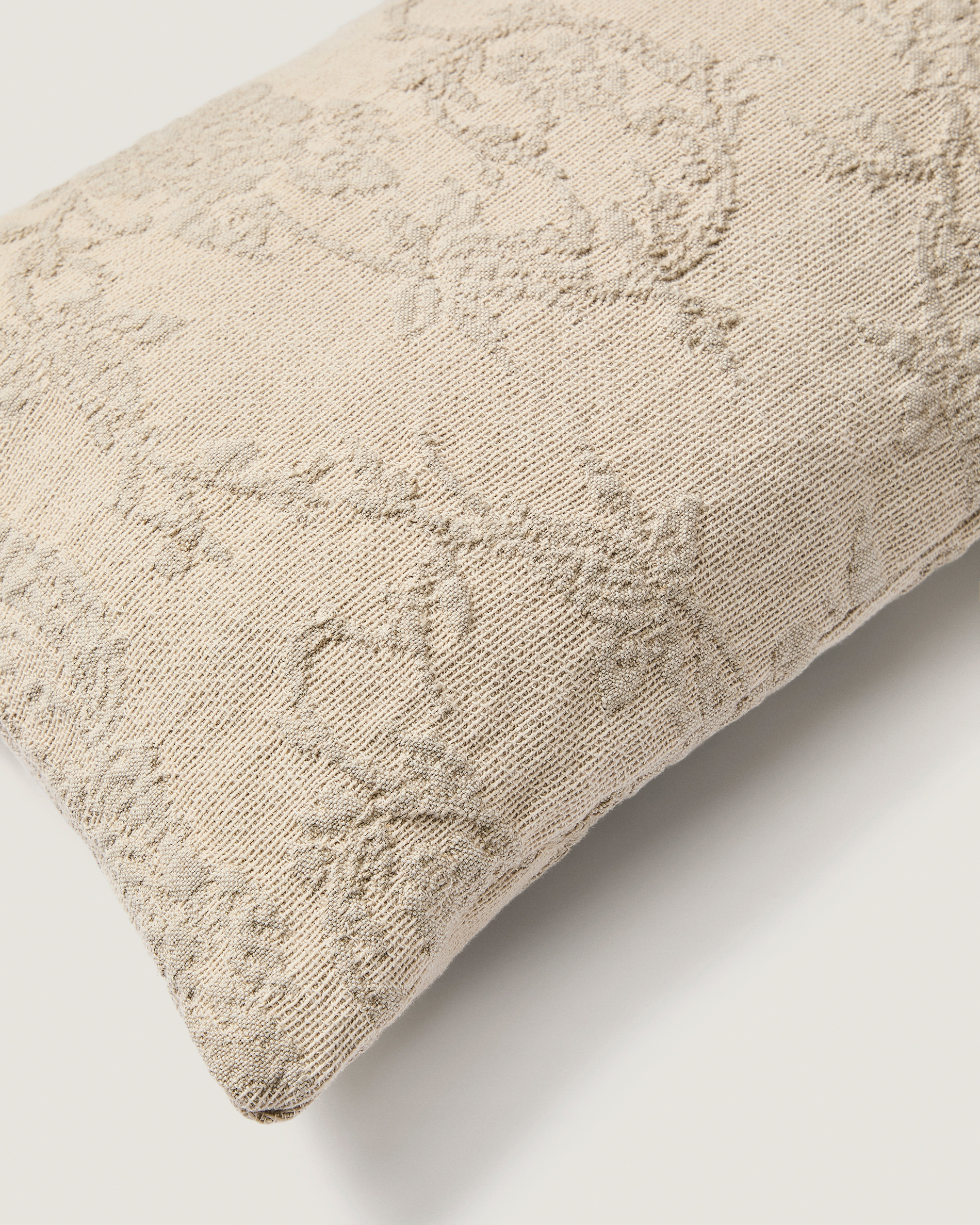 • Mosott len keverék párnahuzat virágos jacquard mintával.