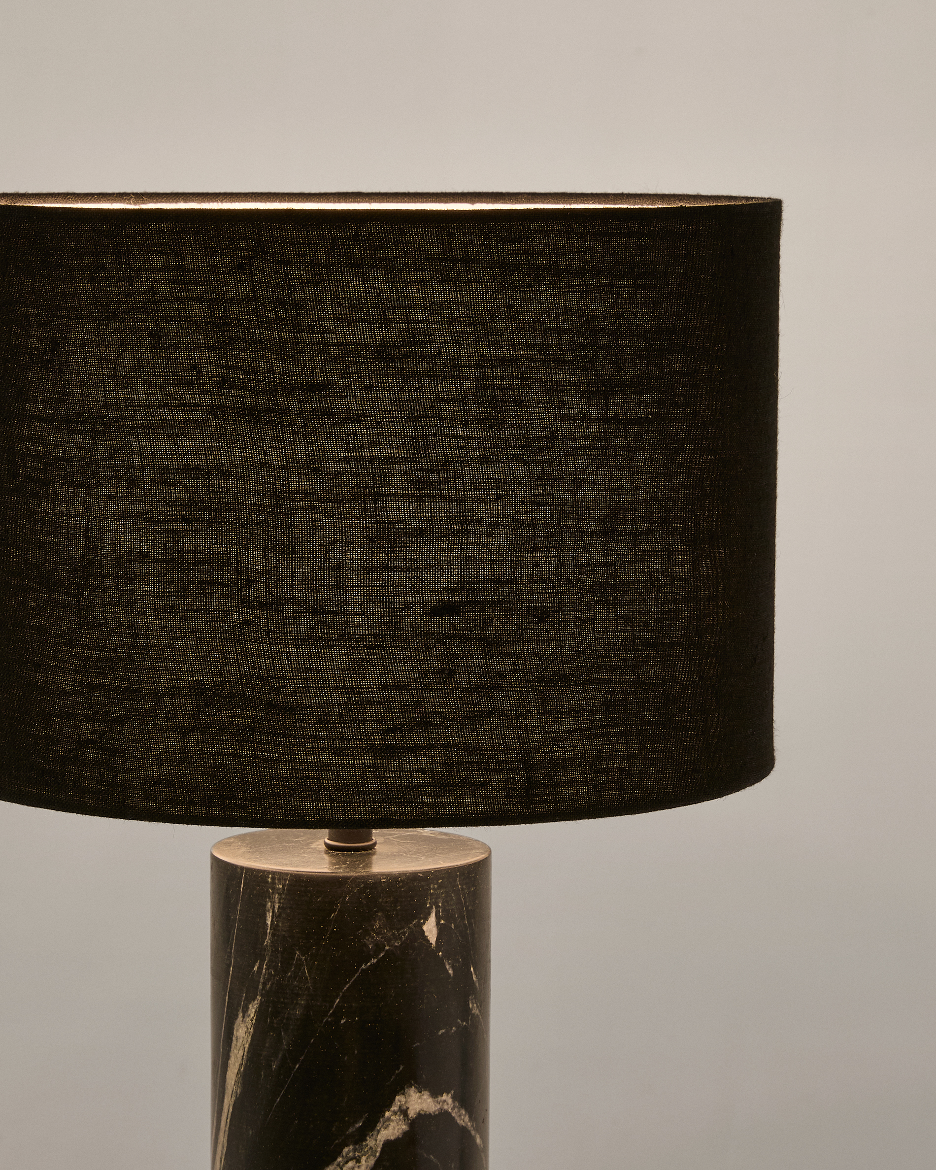 • Fekete márvány asztali lámpa fekete len árnyékkal.