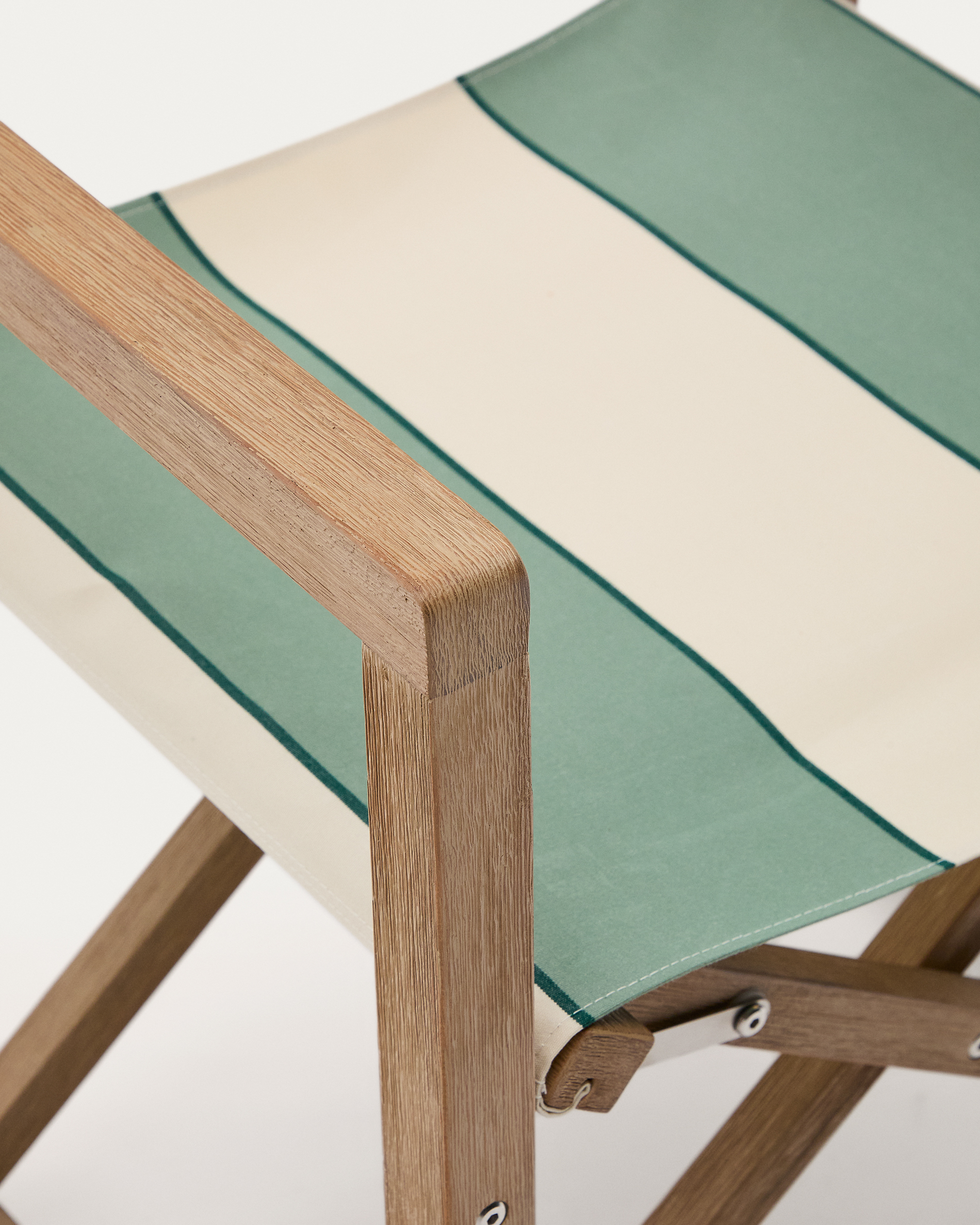 Vilara zöld és bézs csíkos kültéri összecsukható szék FSC 100% tömör akácfa