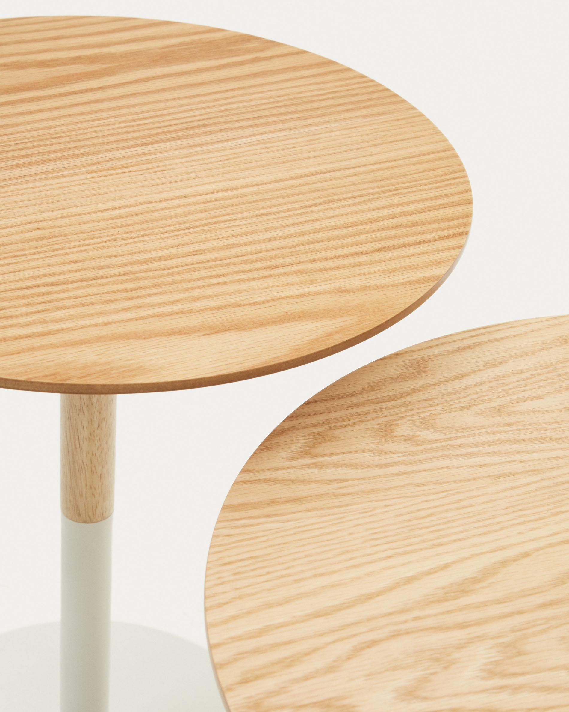 Watse oldal asztal szett 2 darab tölgyfa furnér és matt fehér fém, Ø 40 cm/Ø 48 cm