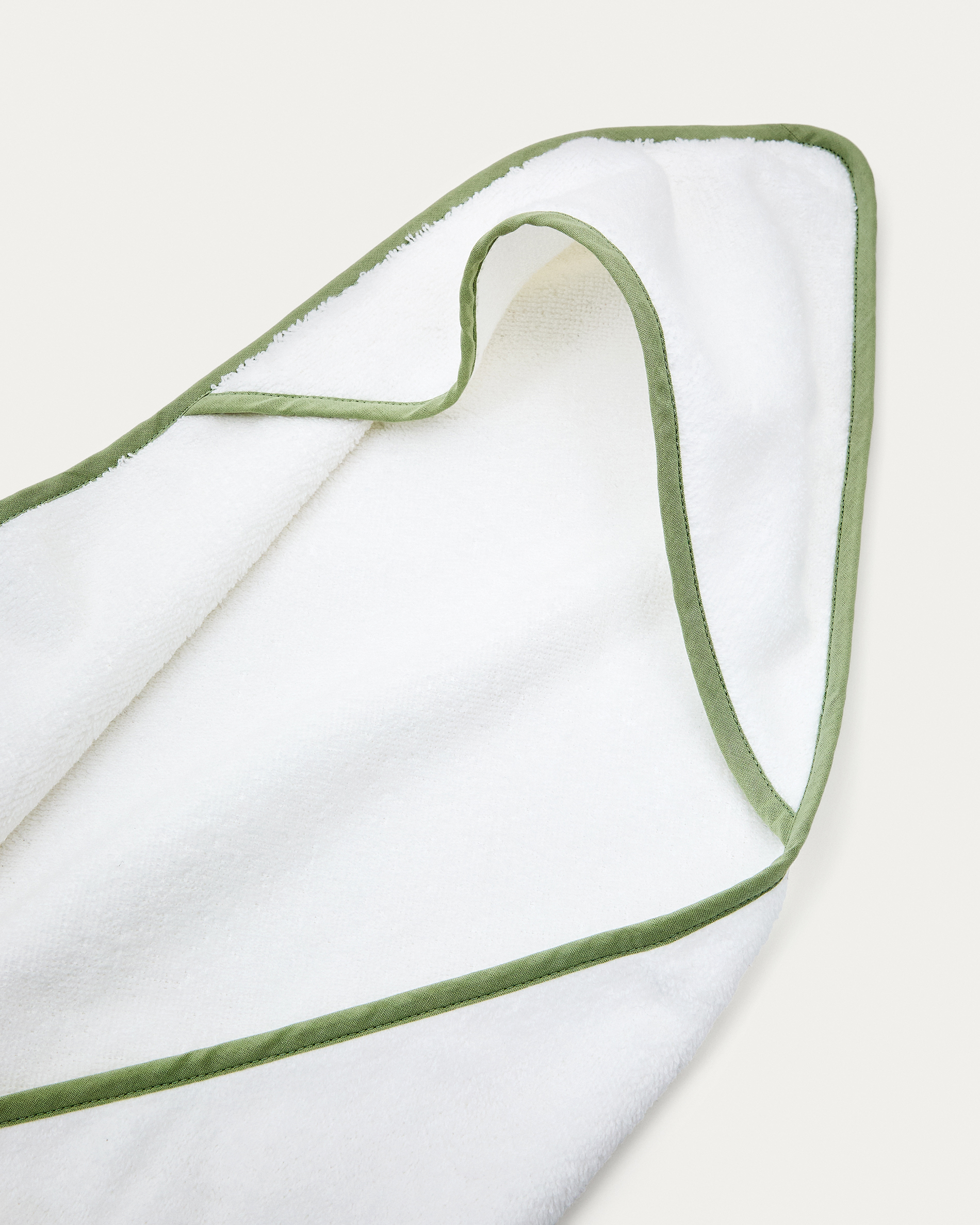 Fehér pamut Nuni kapucnis törölköző zöld szegéllyel
