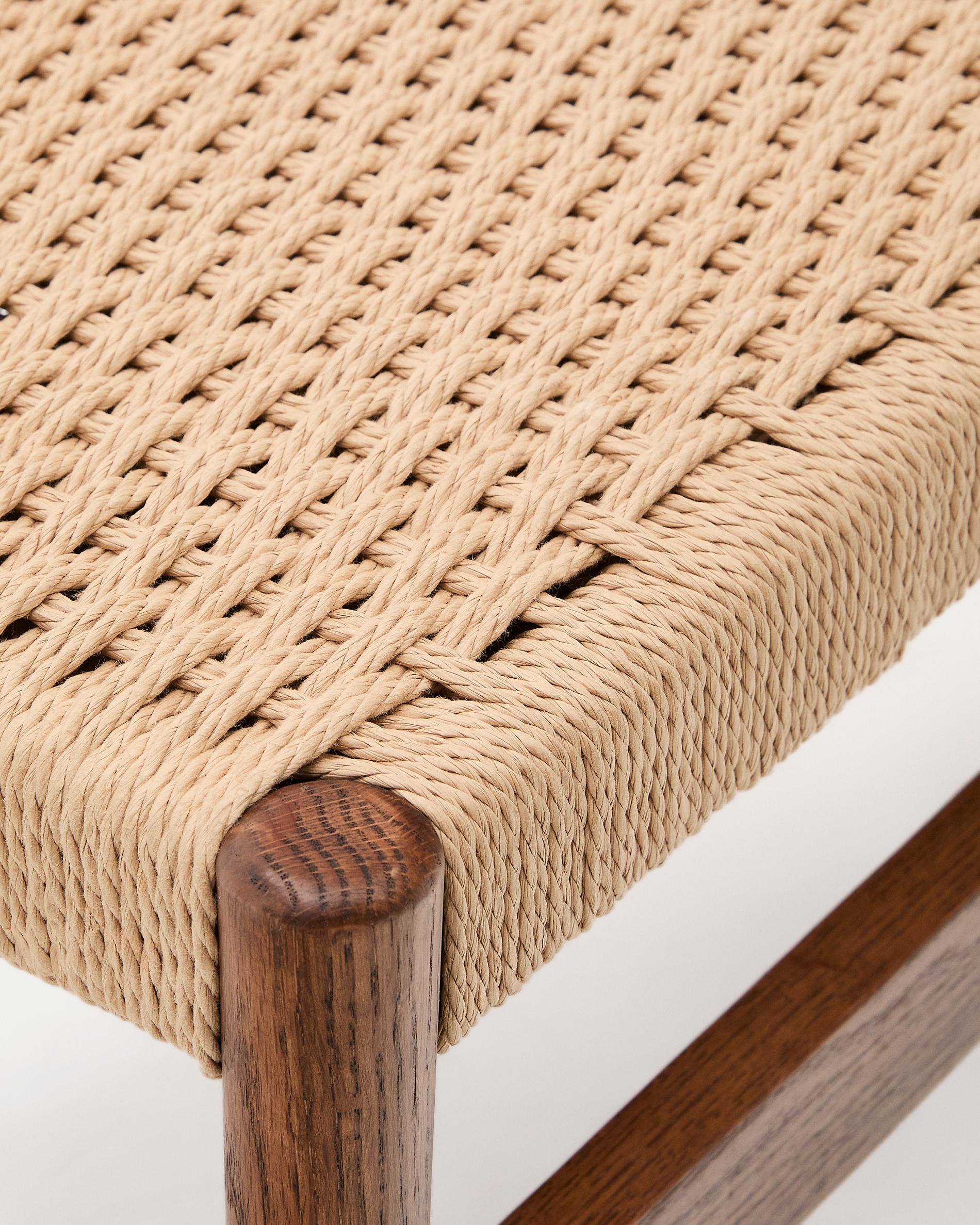 Zaide pad tömör tölgyfa anyagból, dió színben, kézi szövésű papírrudazattal, 120 cm, FSC 100%