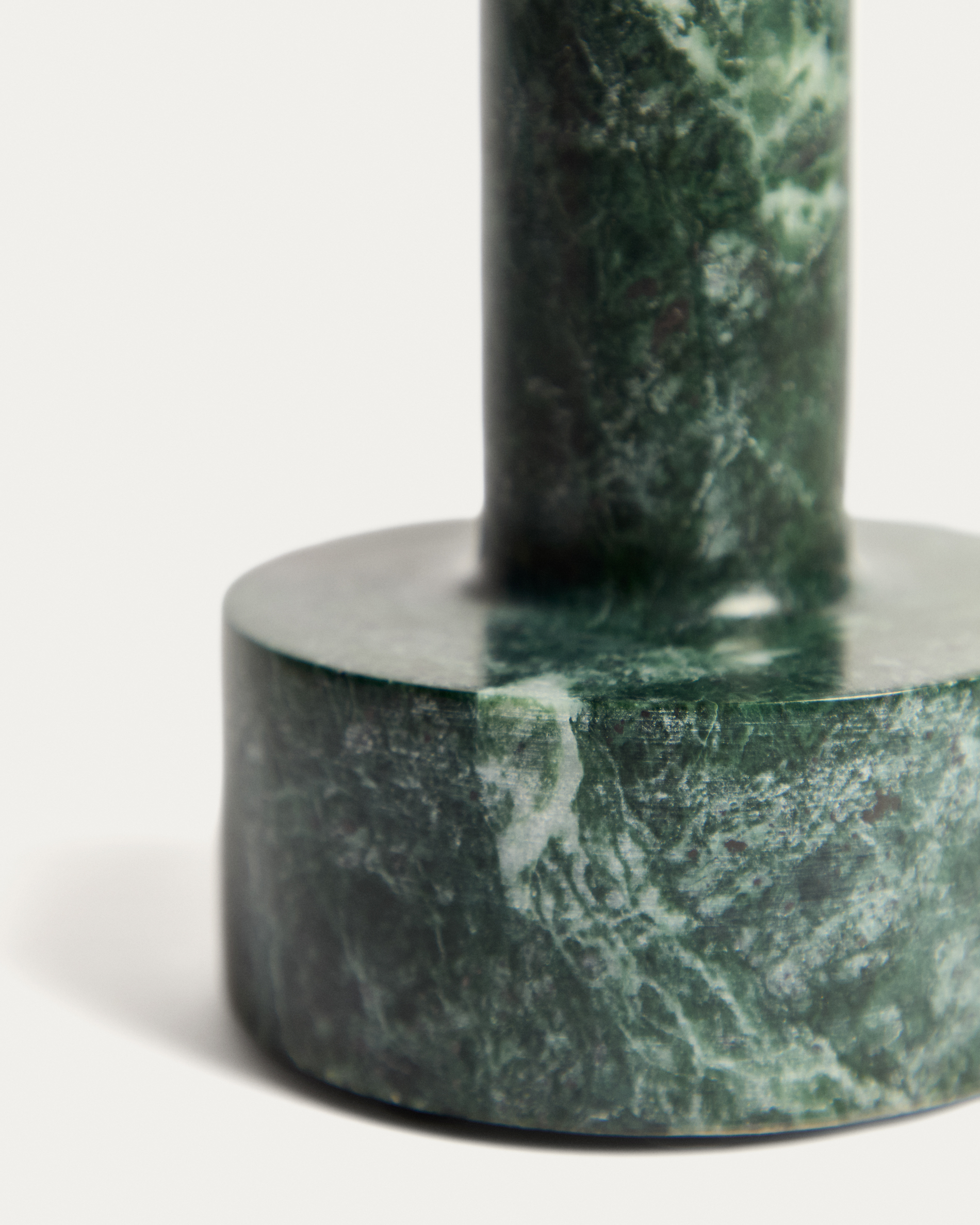 Ez a fehér márvány gyertya tartó elegáns megjelenésével és egyedi szemcsézettségével tűnik ki. Csiszolt felülete finoman tükrözi a fényt, lágy fényjátékkal növelve a tér kifinomultságát. A márvány súlya stabilitást és biztonságot nyújt a gyertya elhelyezésekor, egyszerű vonalai és kiegyensúlyozott arányai pedig időtlen tárggyá teszik, mely mind klasszikus, mind modern környezetbe illik.